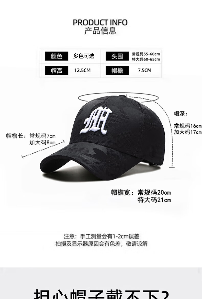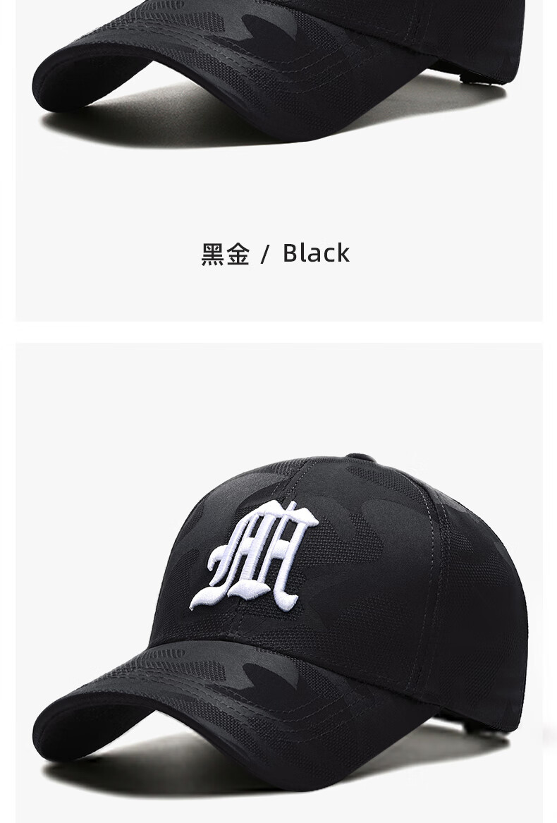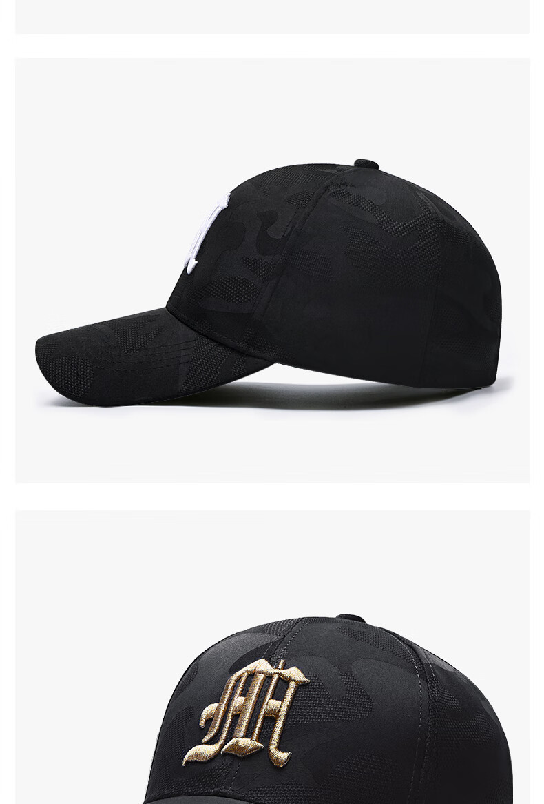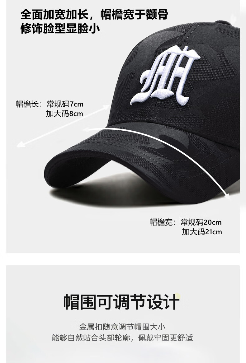 ESSONIO轻奢品牌男士帽子男新款潮流迷彩鸭舌帽户外出游钓鱼宽帽檐棒球帽 浅灰金标【暗纹迷彩 潮流百搭】 均码 可调节