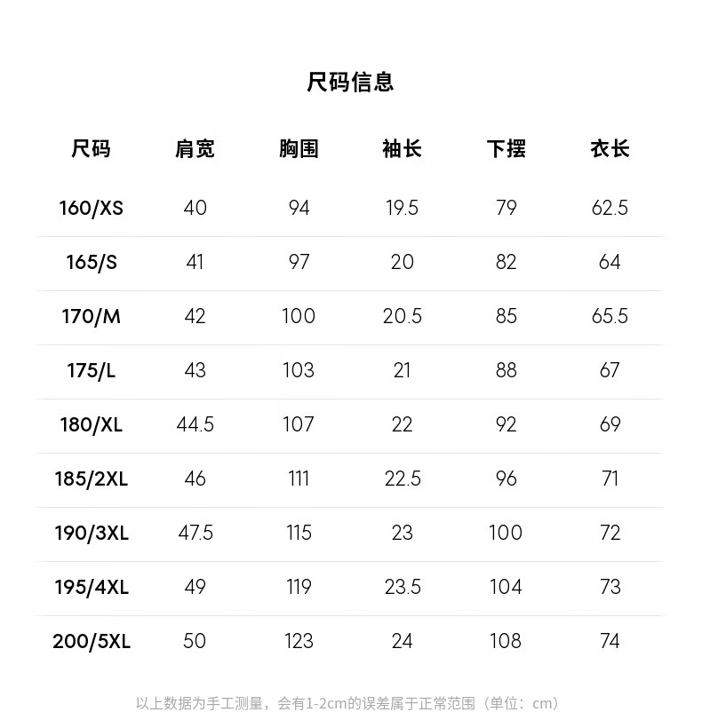 China (cm) 160-165/84-86 165-170 / 88-90 167-172 / 92-96 168-173 / 98-102 170-176 / 106-110