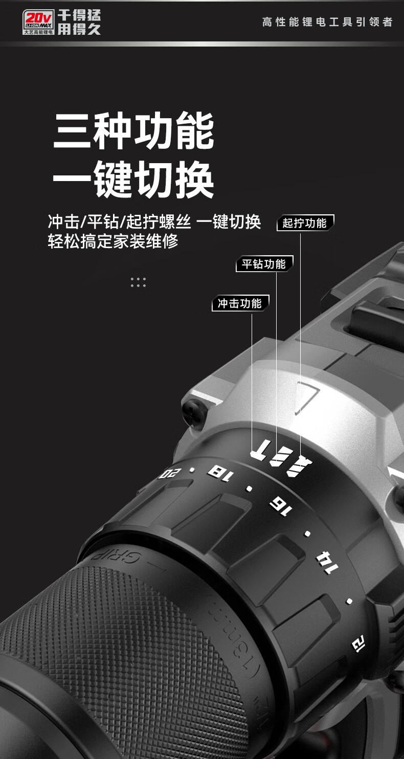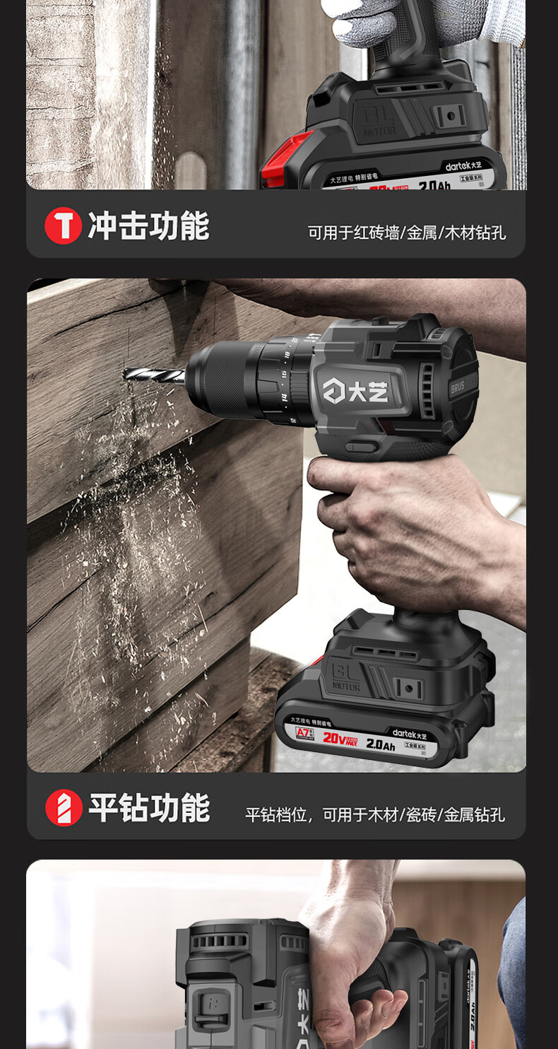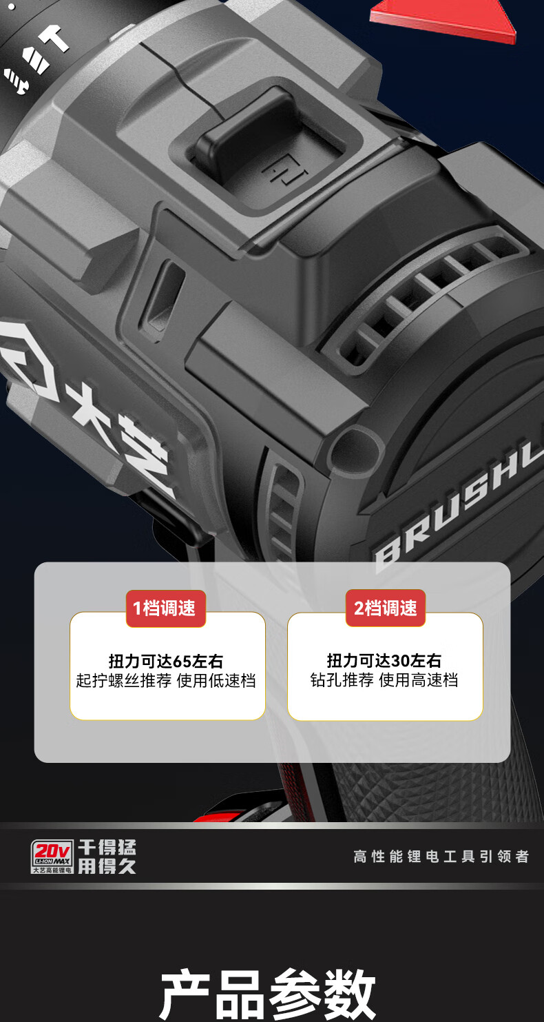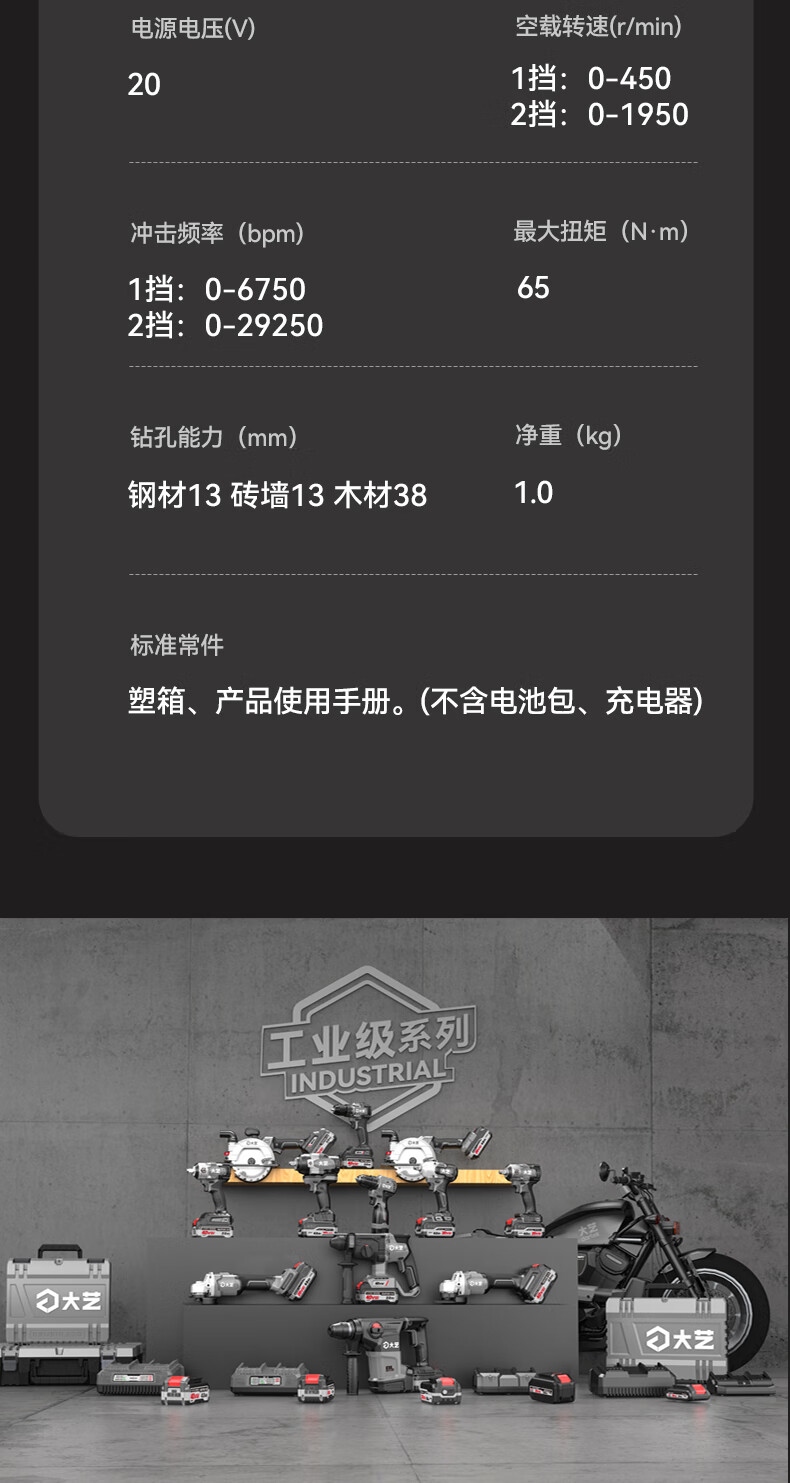 Dayi's new A7Pro1365 industrial grade 20V lithium battery brushless impact drill electric screwdriver rechargeable hand drill A7Pro1365i-2.0 single battery package