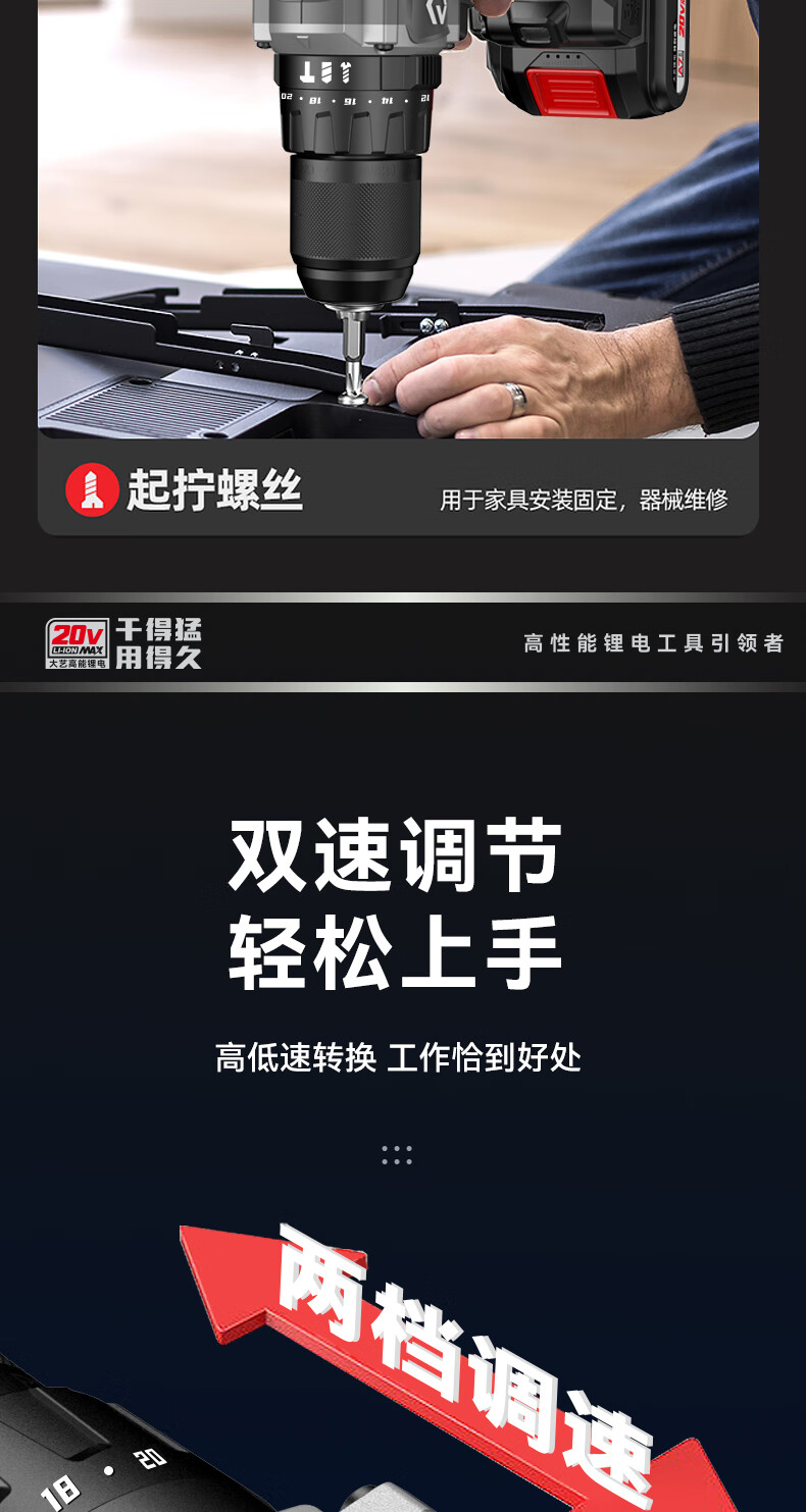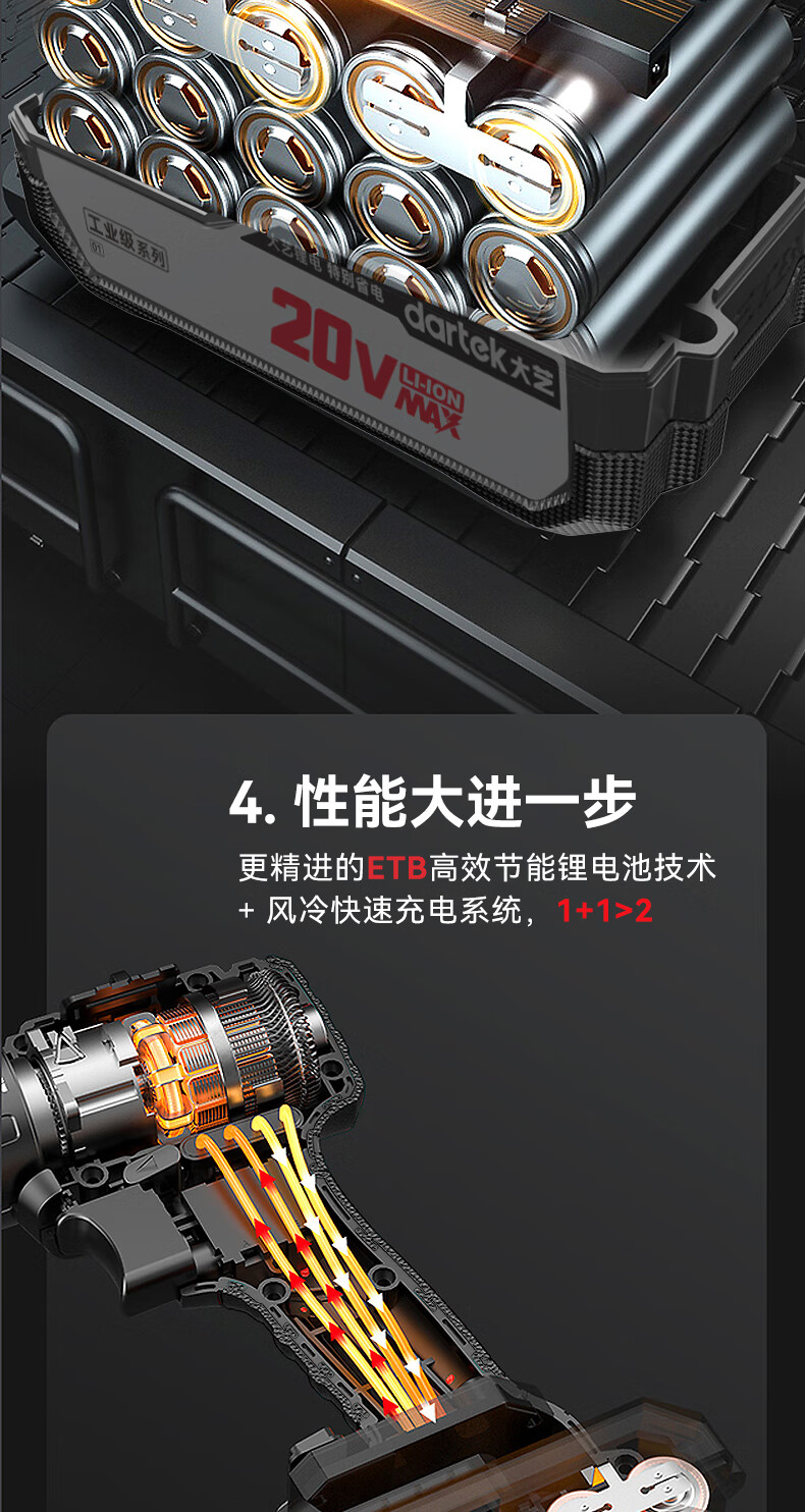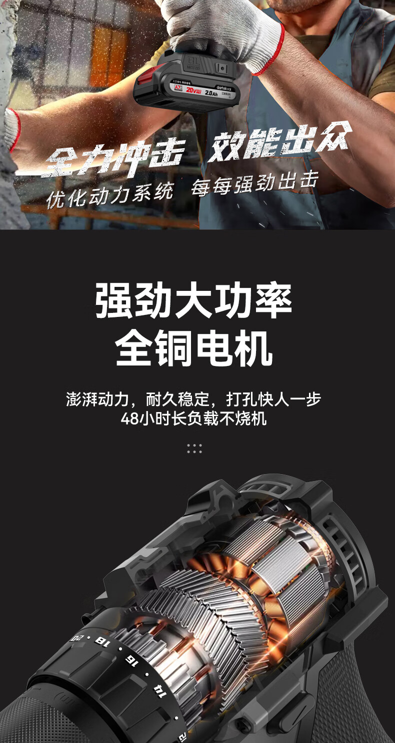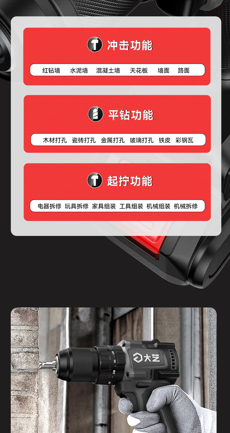 Dayi's new A7Pro1365 industrial grade 20V lithium battery brushless impact drill electric screwdriver rechargeable hand drill A7Pro1365i-2.0 single battery package
