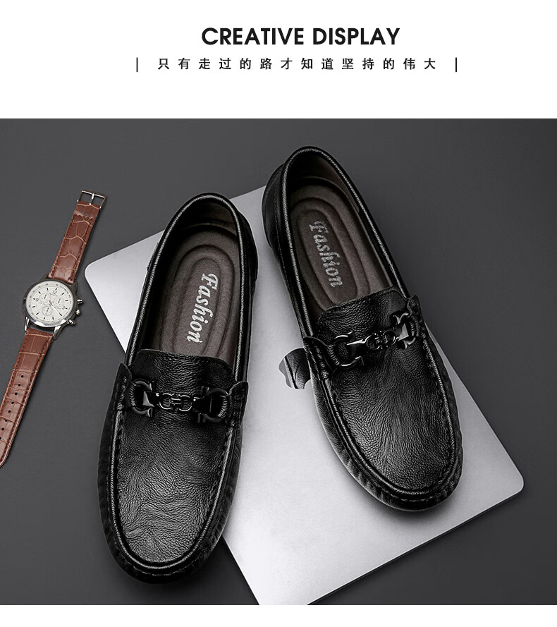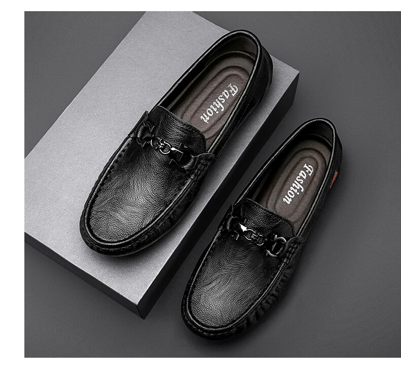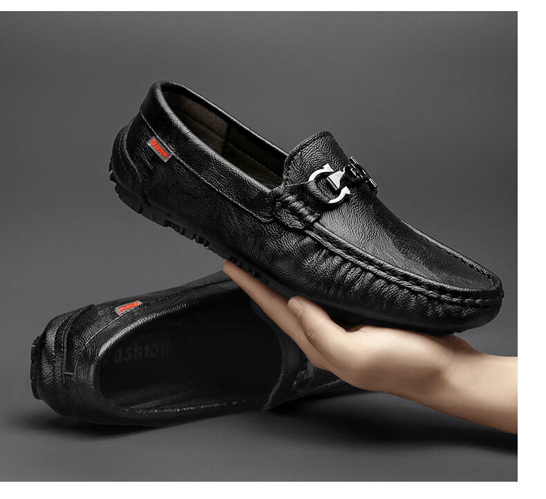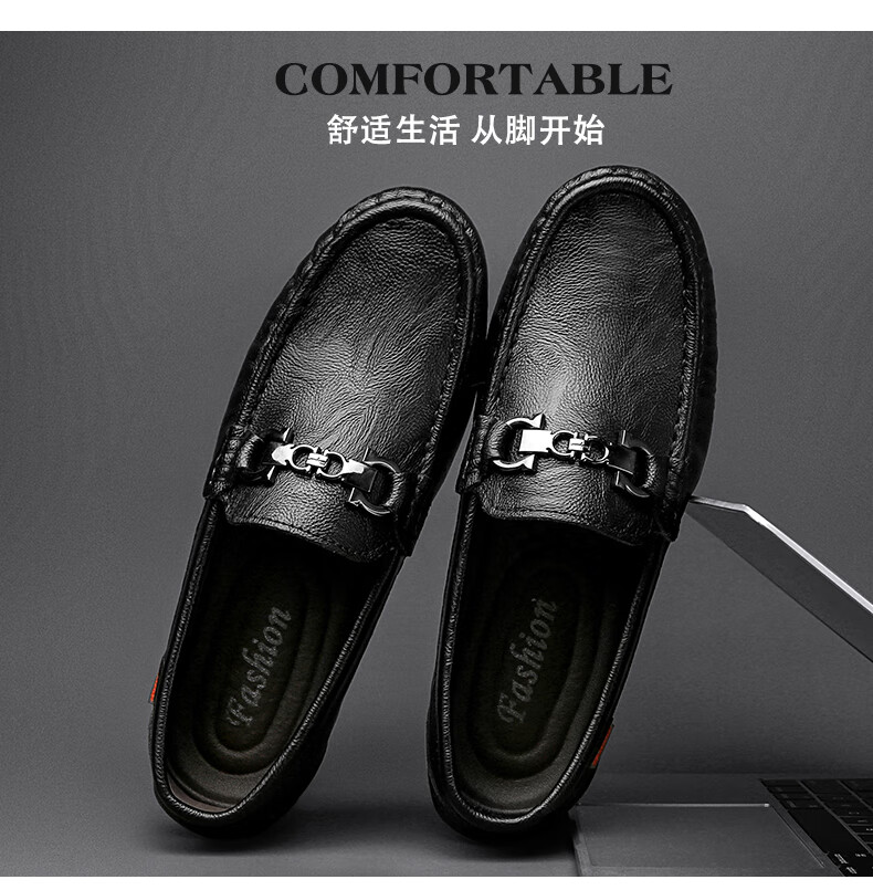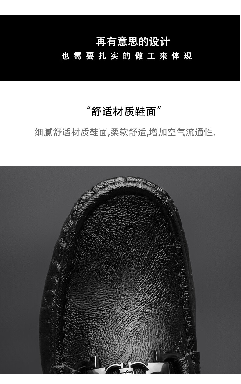 卡帝乐鳄鱼(CARTELO)春季男鞋豆豆鞋真皮男士2025新款商务软皮软底懒人一脚蹬休闲皮鞋 黑色镂空-9901 38