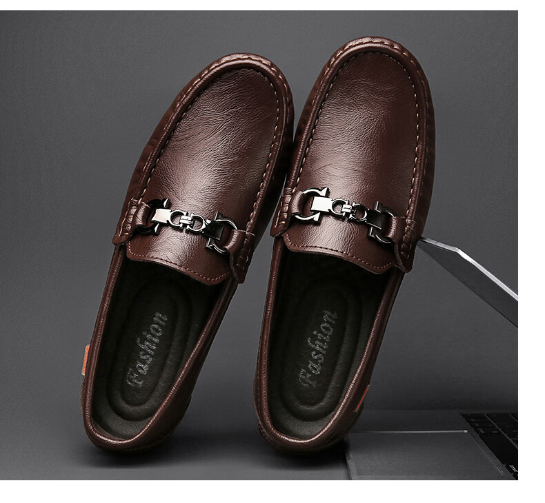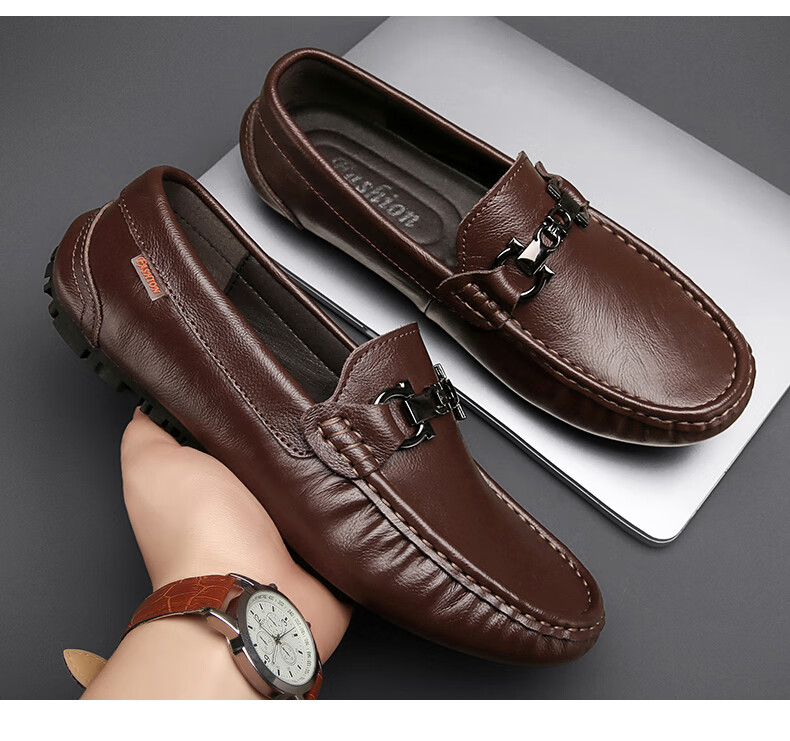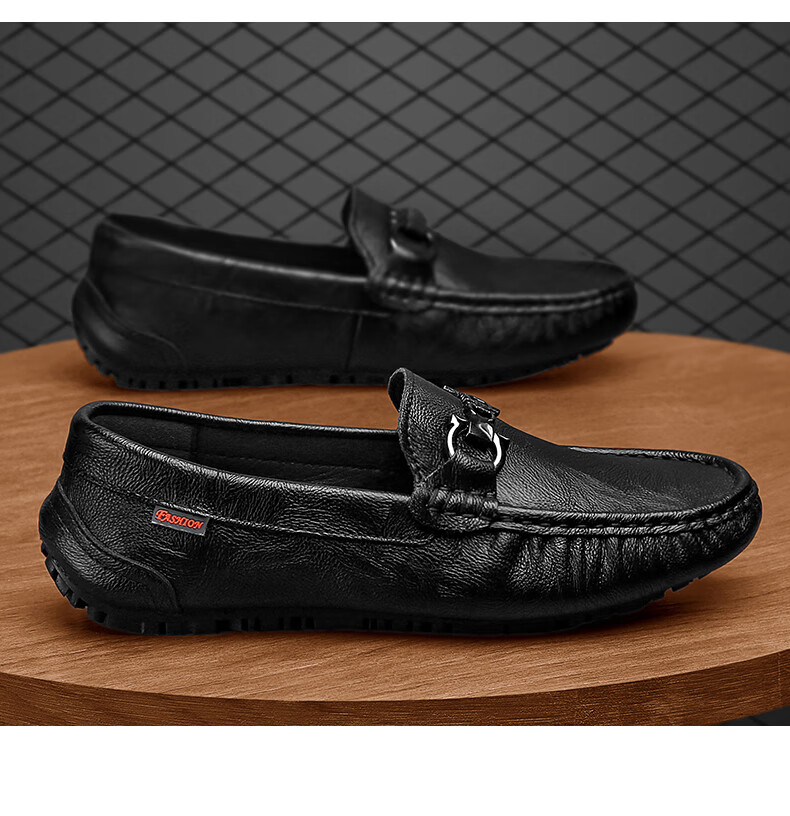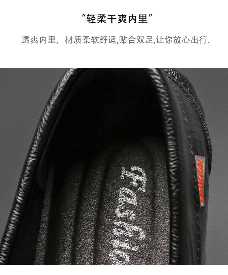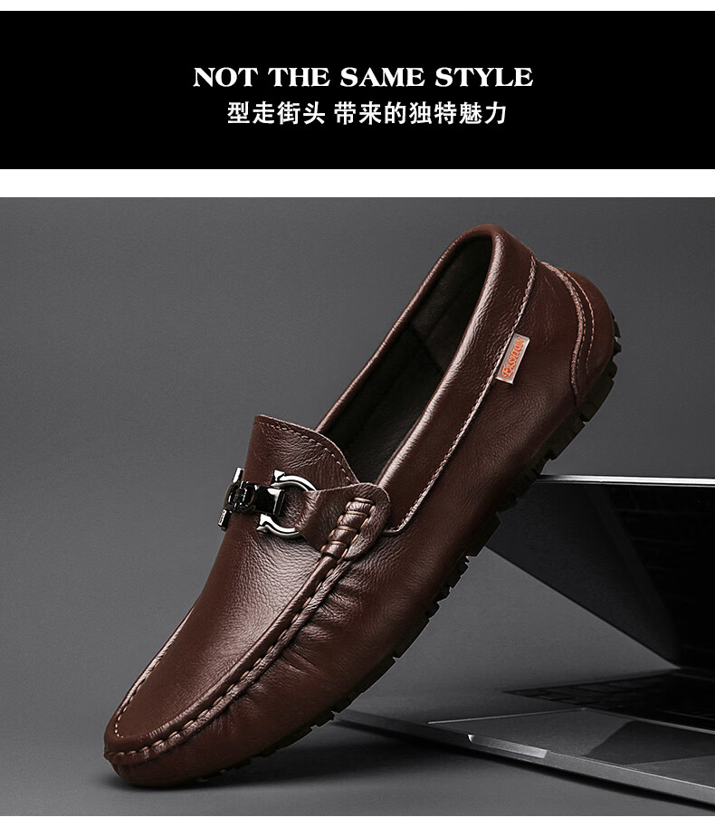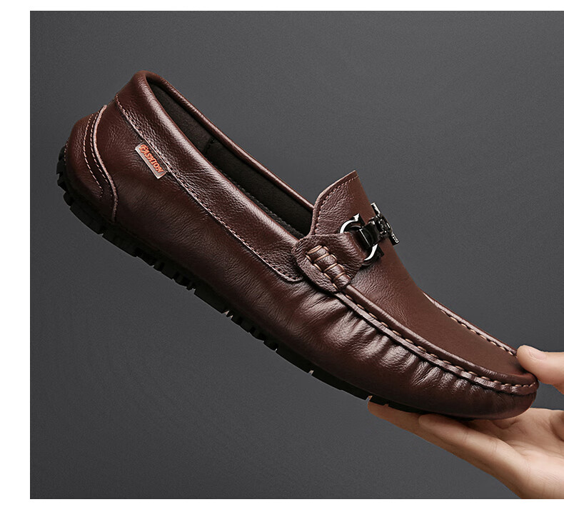 卡帝乐鳄鱼(CARTELO)春季男鞋豆豆鞋真皮男士2025新款商务软皮软底懒人一脚蹬休闲皮鞋 黑色镂空-9901 38