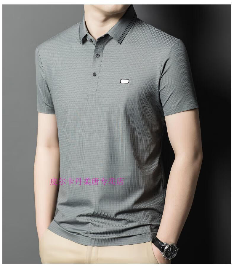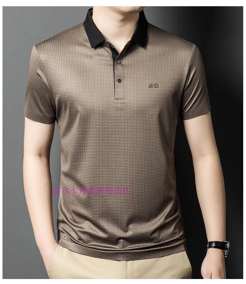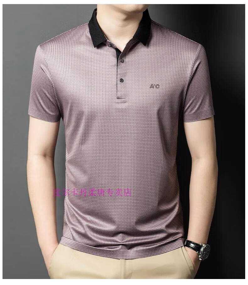 Pierre Cardin high-end mulberry silk short-sleeved T-shirt for men 2025 summer thin business casual dad wear lapel non-iron Polo shirt 1365 style red M 48