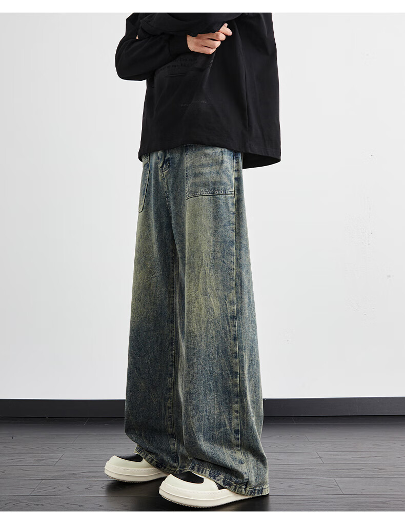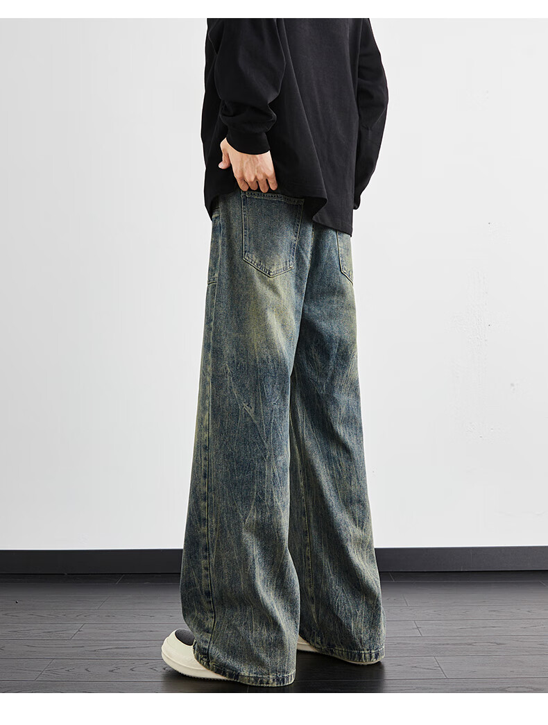 Playboy (PLAYBOY) Lightning Pattern Washed Jeans Men's Summer New Retro Loose Straight Wide Leg Pants Trendy Brand High Street American Pants 1049 Black Gradient M