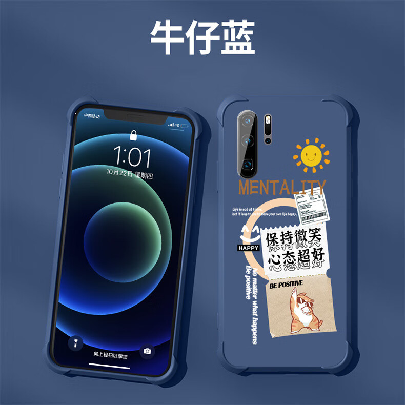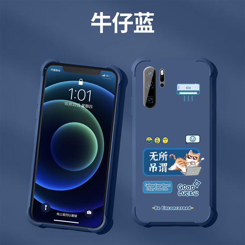 Nicht scharf, geeignet für Huawei P30pro-Handyhülle, Herrenlinse, Vollrand-Flüssigsilikon-Vier-Ecken-Airbag-Anti-Fall-Schutzhülle, mikromattierter inspirierender Text-Cartoon neuer Stil ou1283 Seien Sie ein Laie-Jeansblaues Huawei P30pro-Einzelgehäuse