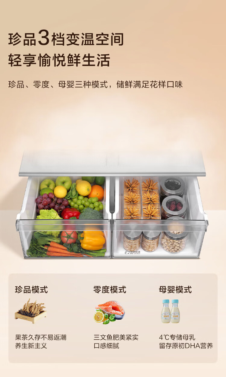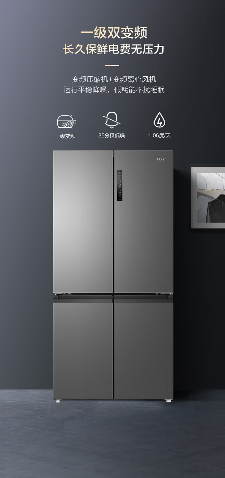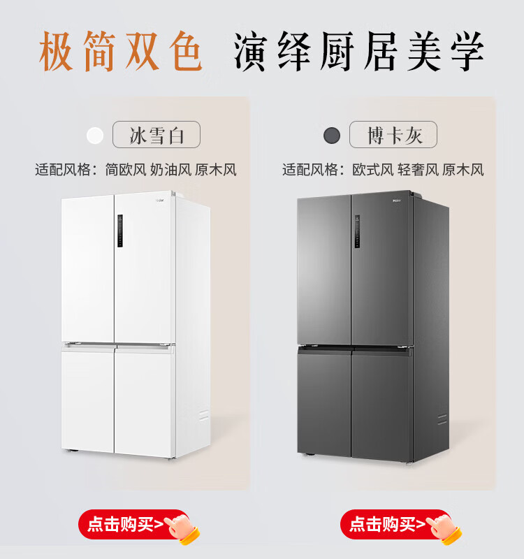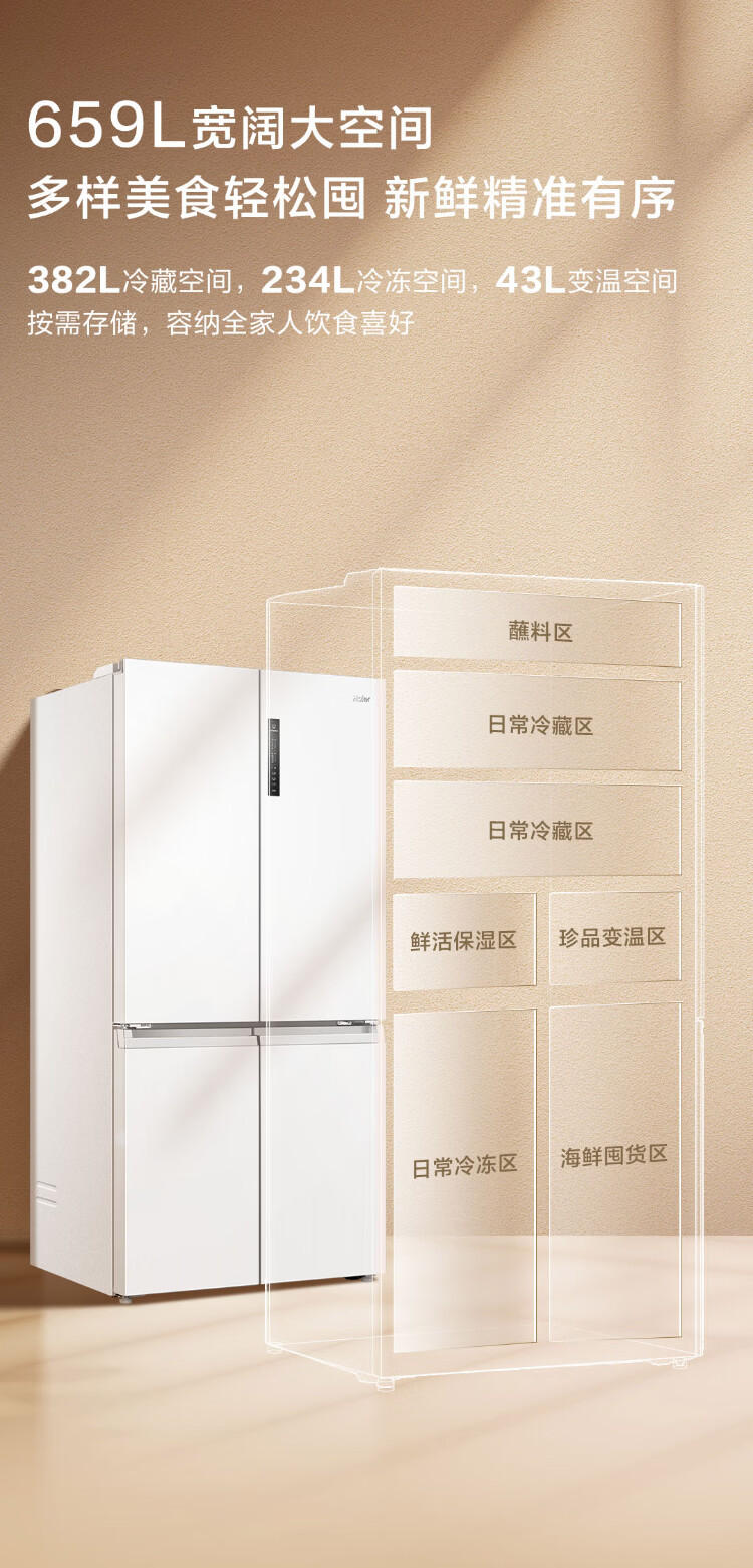 Haier 659-liter refrigerator cross-door four-door double-door first-class energy efficiency state-subsidized air-cooled frost-free dual-cycle household ultra-large capacity refrigerator over 600 liters 659-liter Boka Ash丨EPP ultra-clean system丨oxygen barrier dry and wet storage