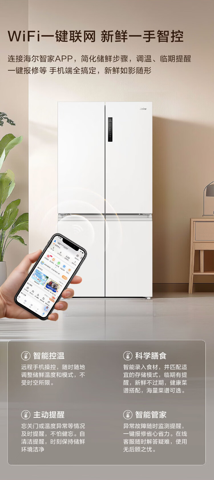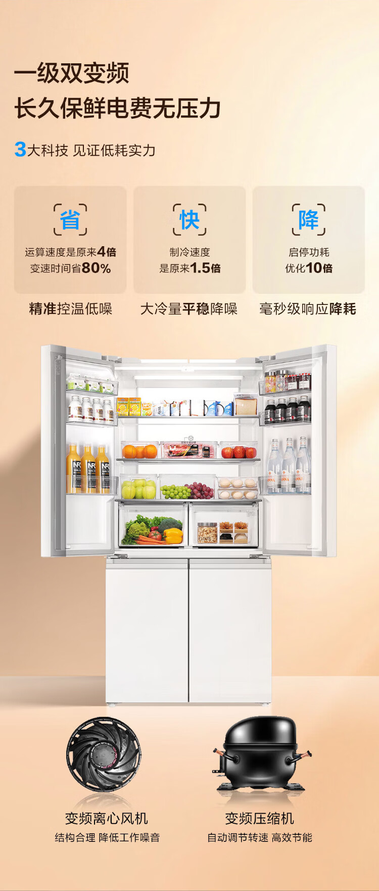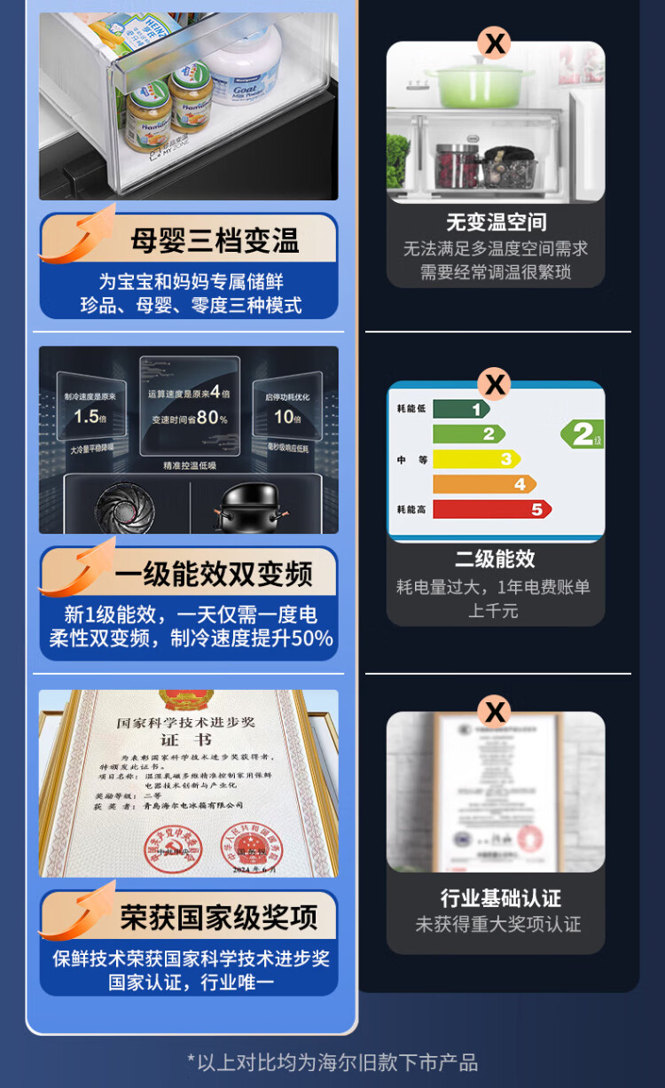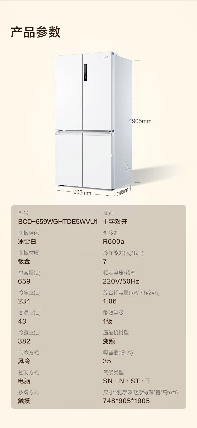 Haier 659-liter refrigerator cross-door four-door double-door first-class energy efficiency state-subsidized air-cooled frost-free dual-cycle household ultra-large capacity refrigerator over 600 liters 659-liter Boka Ash丨EPP ultra-clean system丨oxygen barrier dry and wet storage
