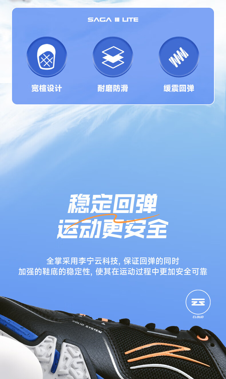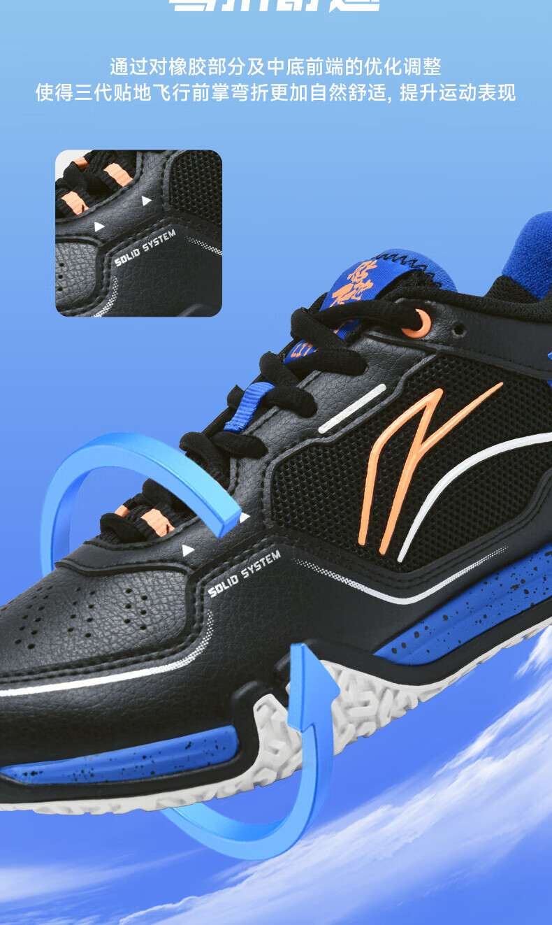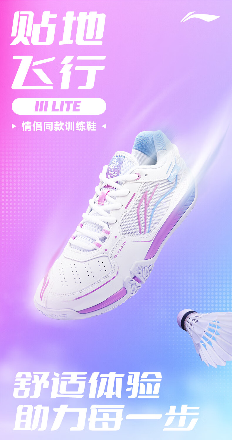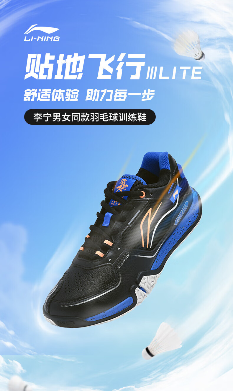 Li Ning (LI-NING) Badminton Shoes Competition Shoes Ground-Flying 3LITE Wear-Resistant Shock Absorption Comfortable Standard Last Training 25 New Ground-Flying-LITE-Black 44