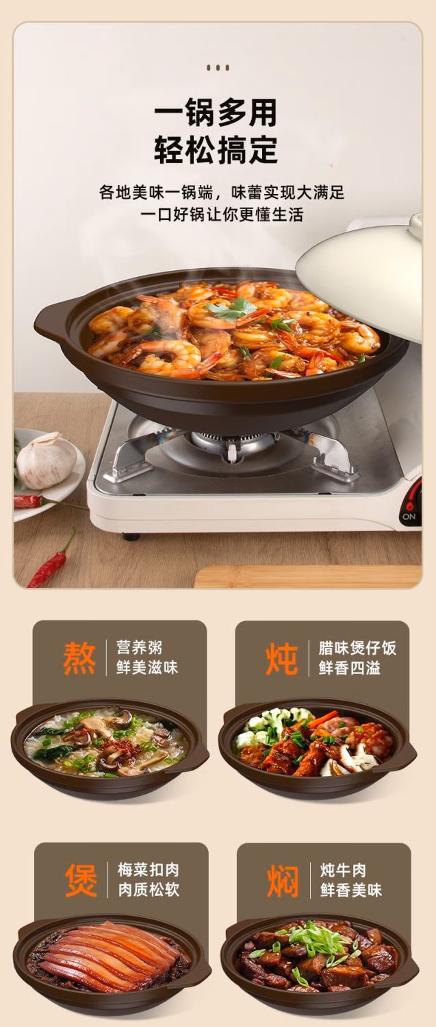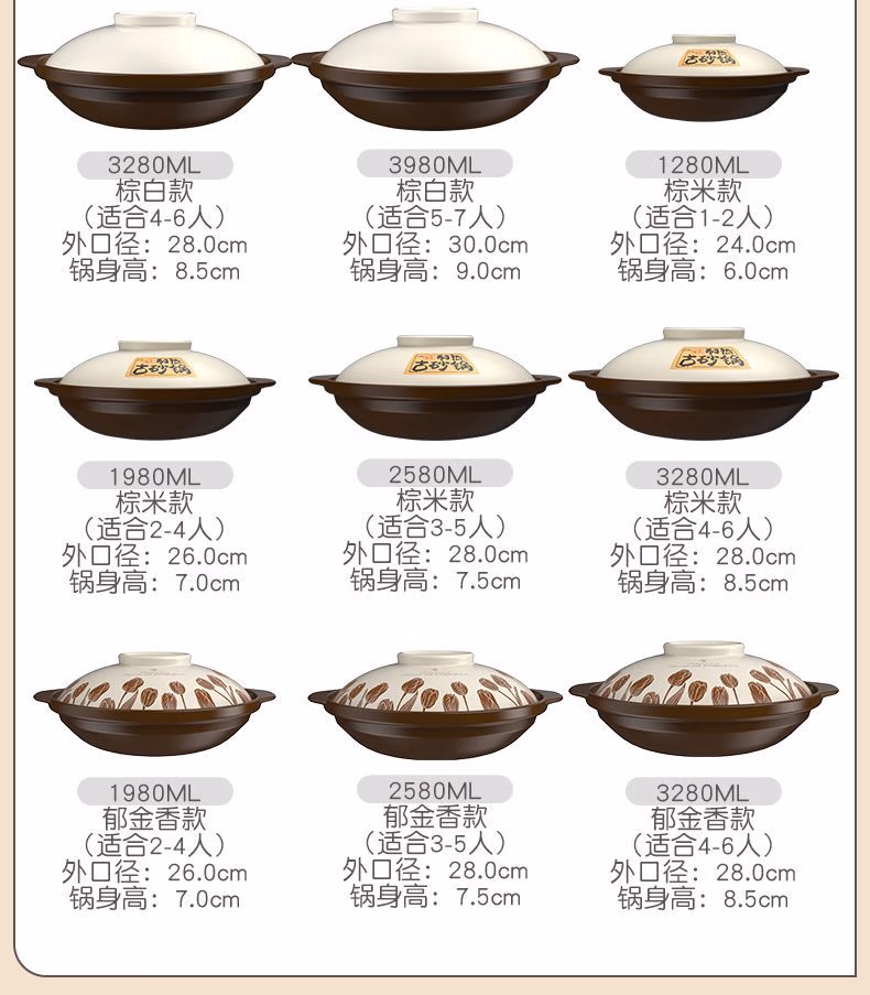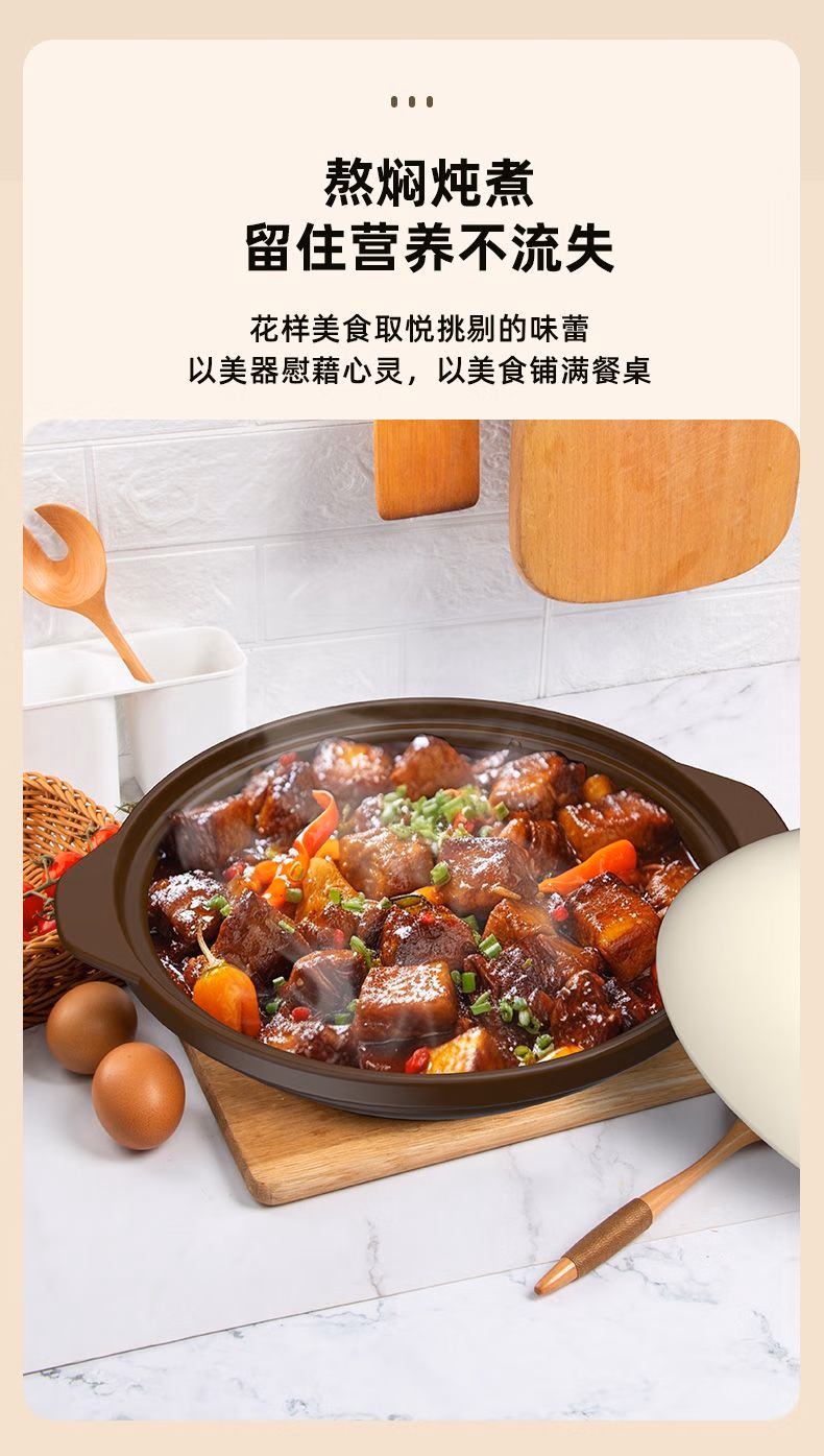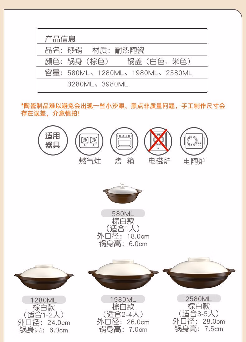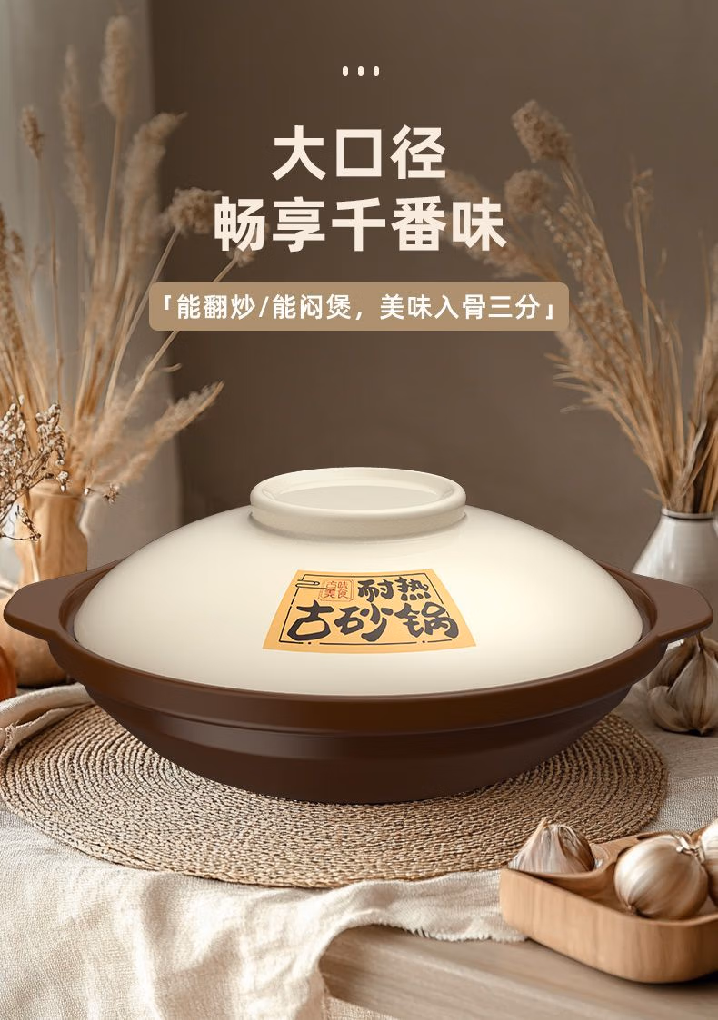 Kangshu explosion-proof and dry-burning casserole, dry-burning pot, high-temperature resistant gas stove, special large-diameter shallow pot, porcelain pot, beige lid, dry-burning resistant, double-effect anti-cracking 1 11980ml