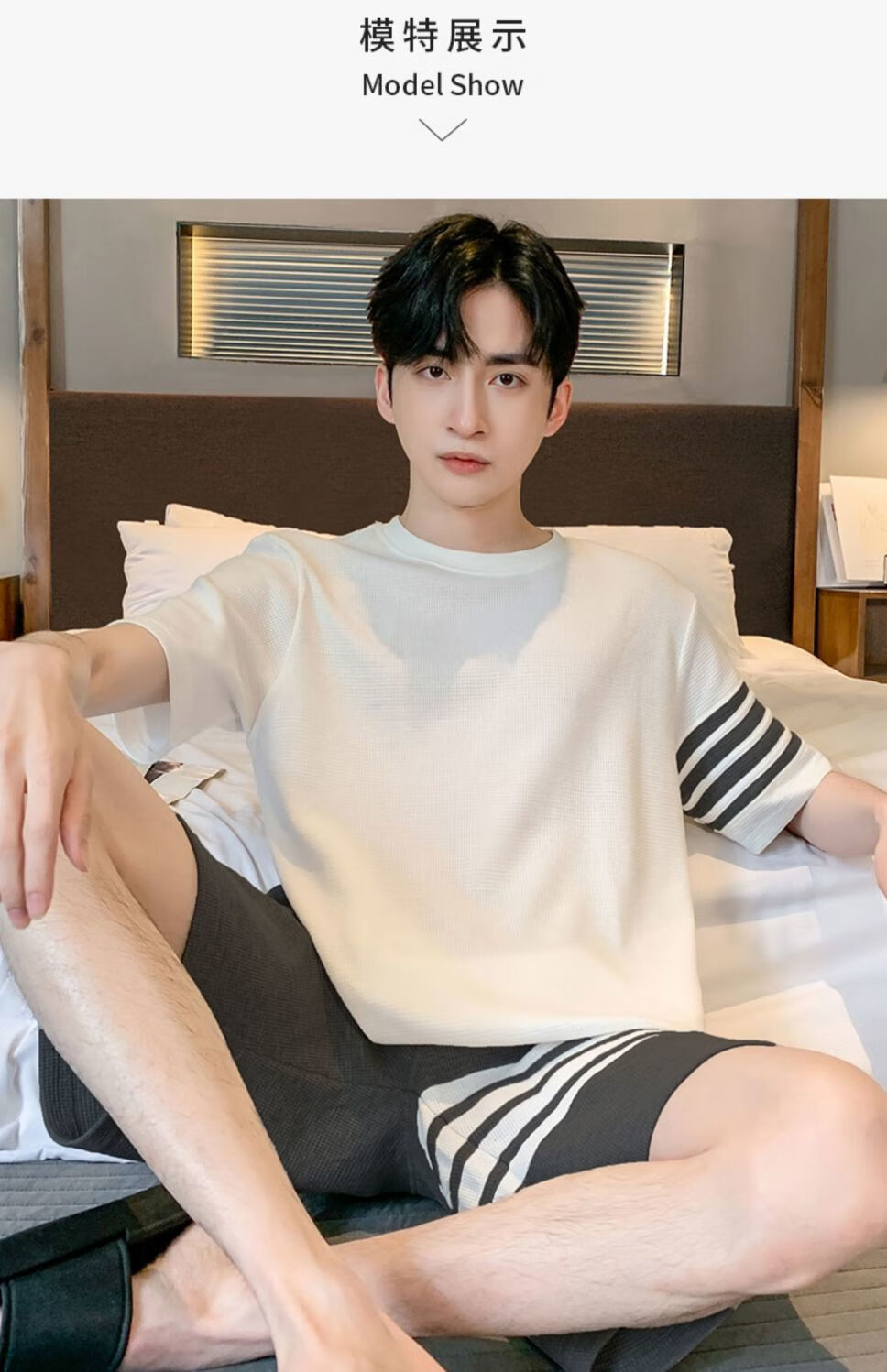 MiiOW 2025 Nuevos pijamas para hombres Pantalones cortos finos de manga corta de modal de verano Traje de ropa para el hogar usable de verano 6198 Traje modal azul 2XL 140-160 Jin Jin es igual a 0,5 kg