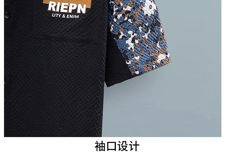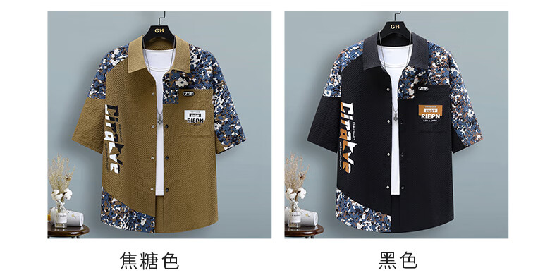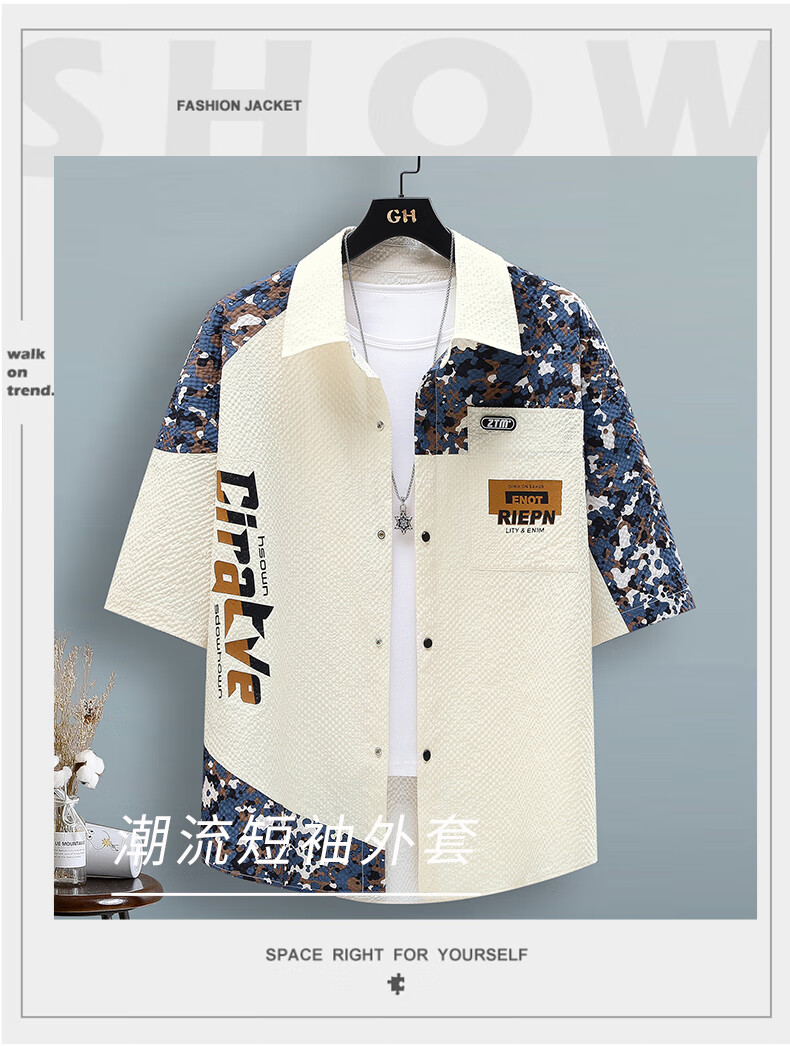 Playboy (PLAYBOY) seersucker ice-sleeved short-sleeved shirt men's summer thin quick-drying cool youth color-blocked work shirt jacket flagship official boutique LH-TZ686 top beige M