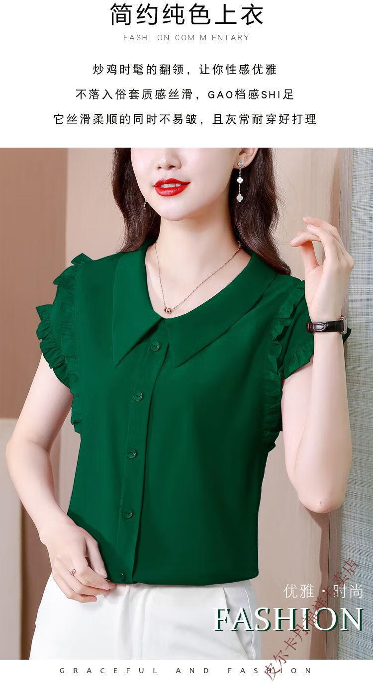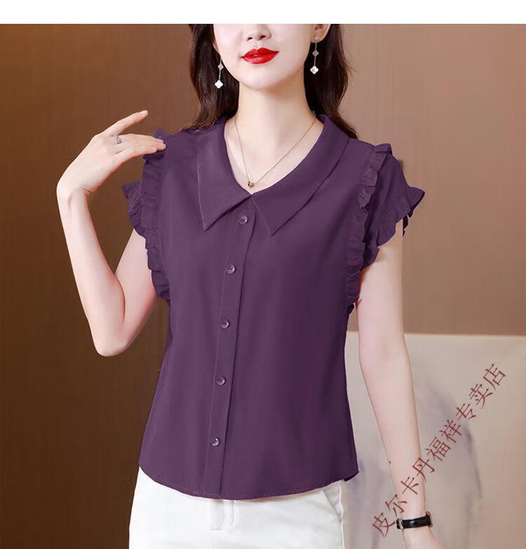 Pierre Cardin chiffon sleeveless top, stylish shirt, girl's doll collar shirt, short-sleeved, versatile chiffon belly-covering chiffon shirt, 6218 Internet celebrity haze blue M. It is recommended that 100Jin Jin is equal to within 0.5kg.