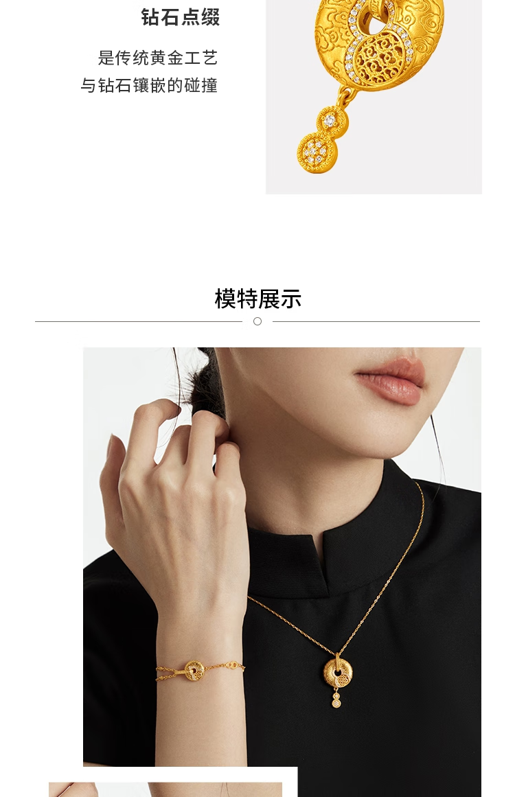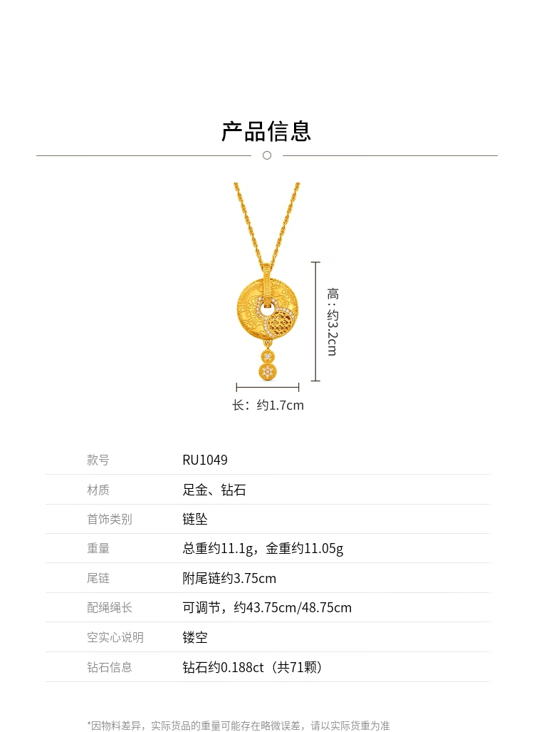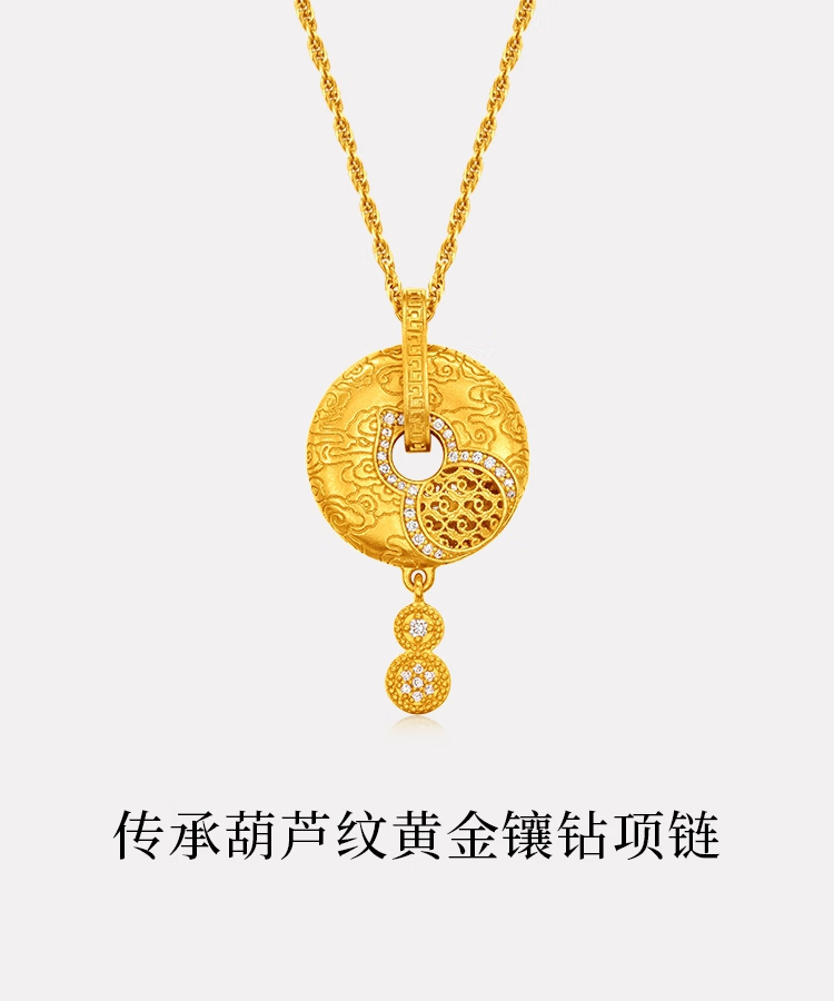 Chow Tai Fook inherits the national charm and operates the gourd safety buckle diamond necklace for women RU1049 40cm