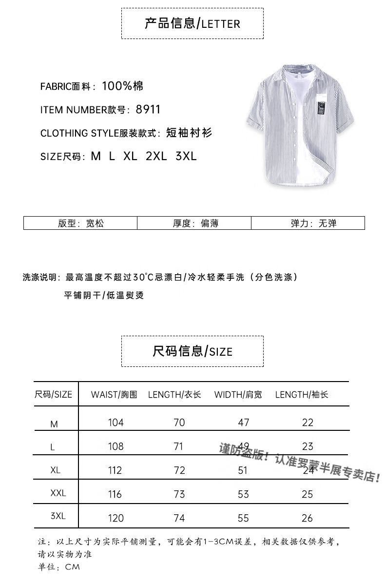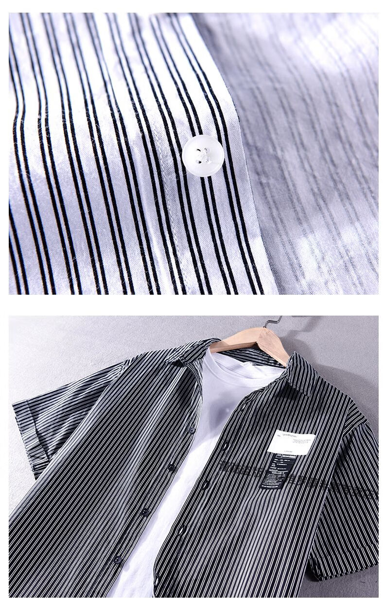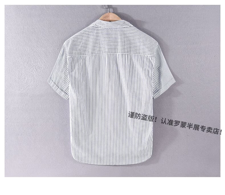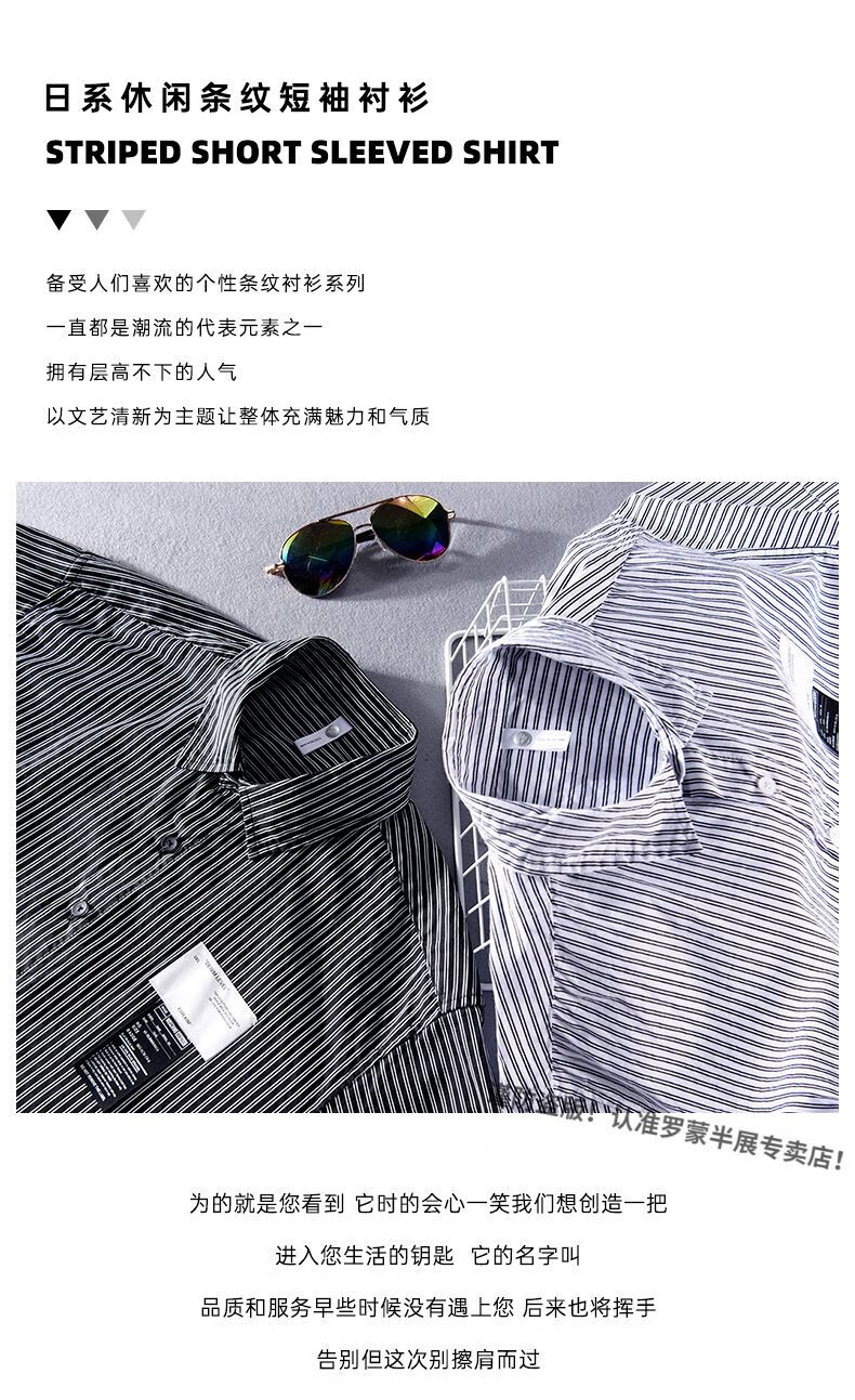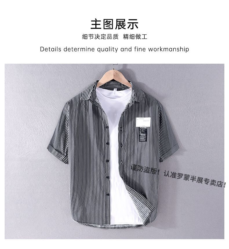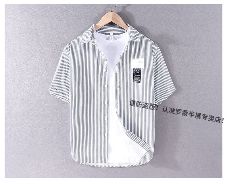ROMON gestreiftes Hemd Herren Kurzarm Sommer dünn japanische Retro reine Baumwolle bügelfrei koreanischer Stil lässig halbärmeliges Label-Shirt 9721 weiß M geeignet für Gewicht 110-125Jin Jin entspricht 0,5 kg