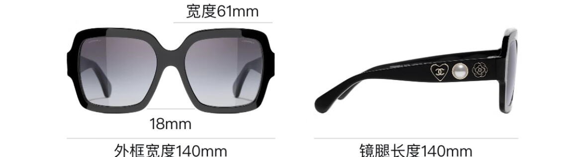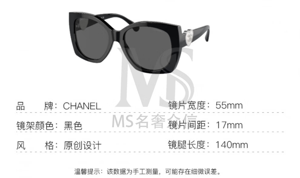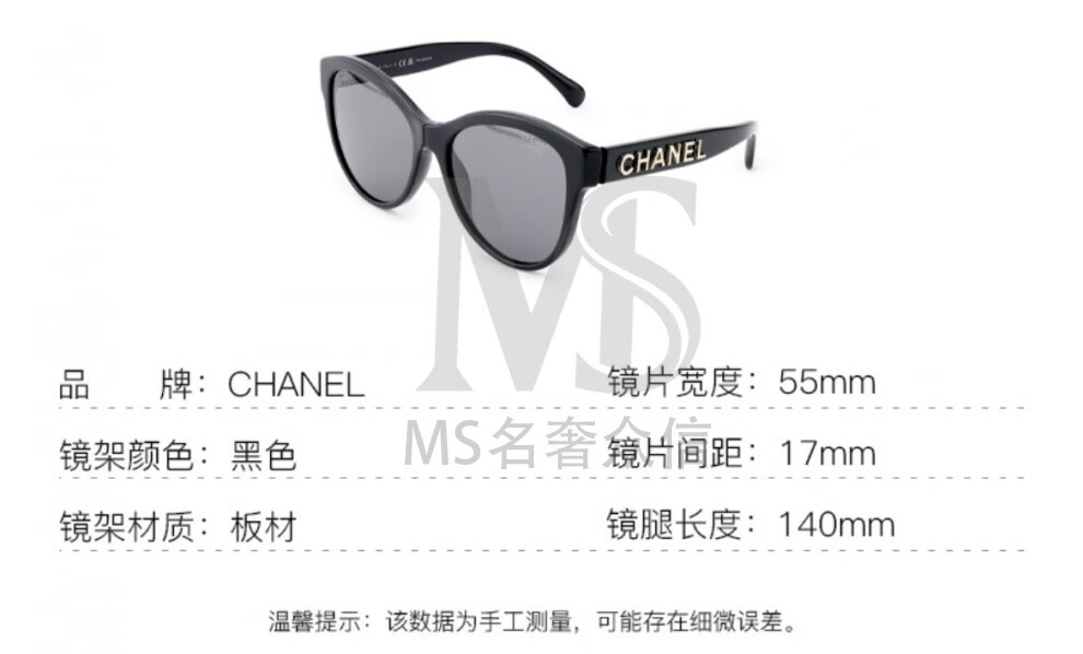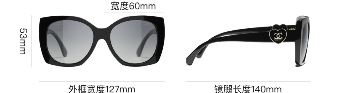 香奈儿  太阳墨镜 不规则形  方形墨镜 节日礼物 男女同款墨镜 开车防晒 CH5494-C1047S6 53码