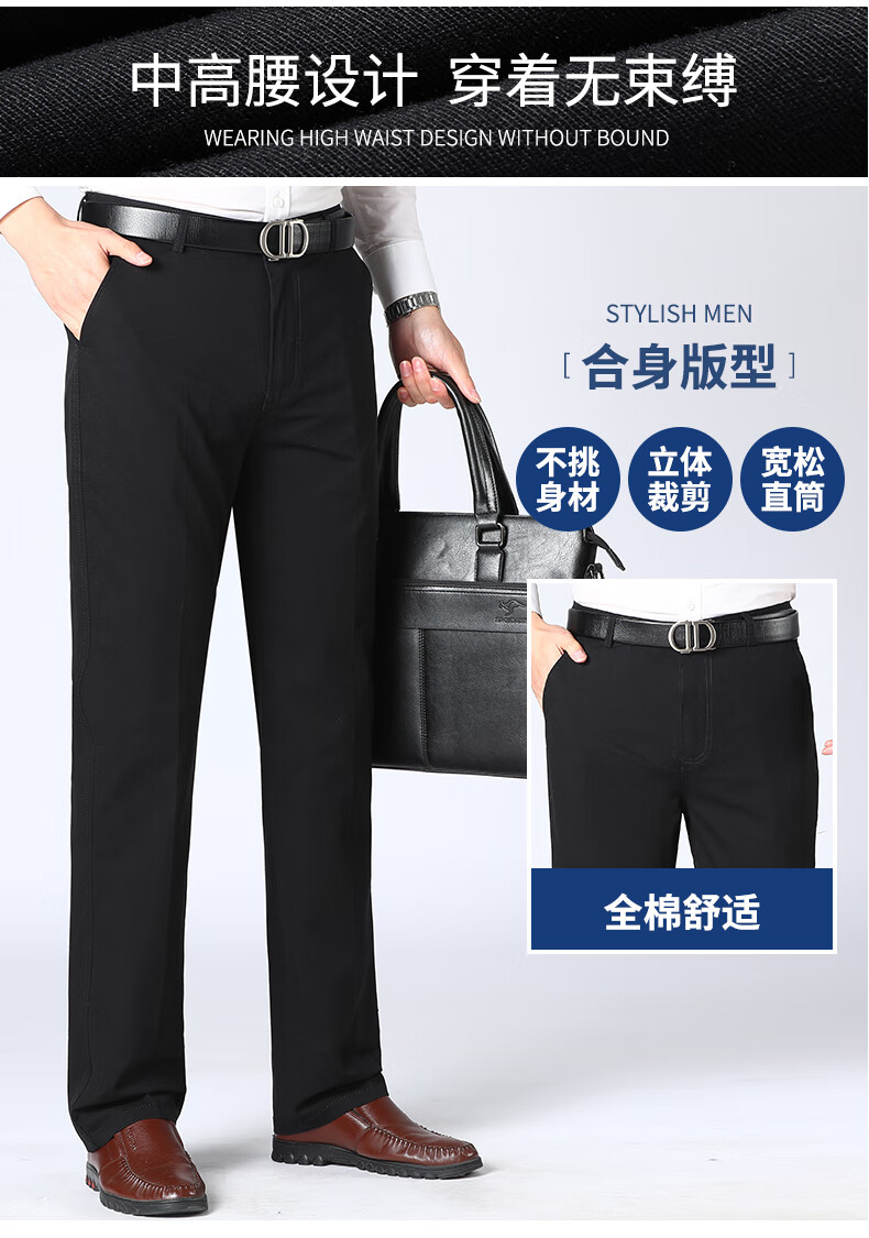 恒源祥直筒商务休闲裤男夏季薄款西裤宽松男裤子中年爸爸长裤百搭男装 C9908藏青【春秋款】 29 2尺2