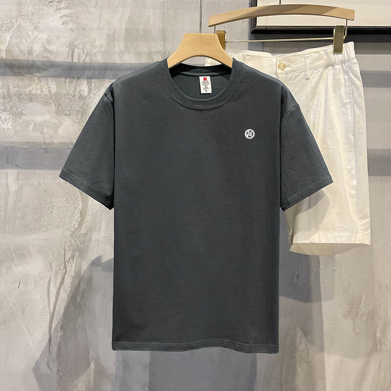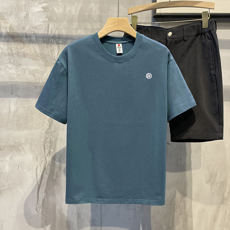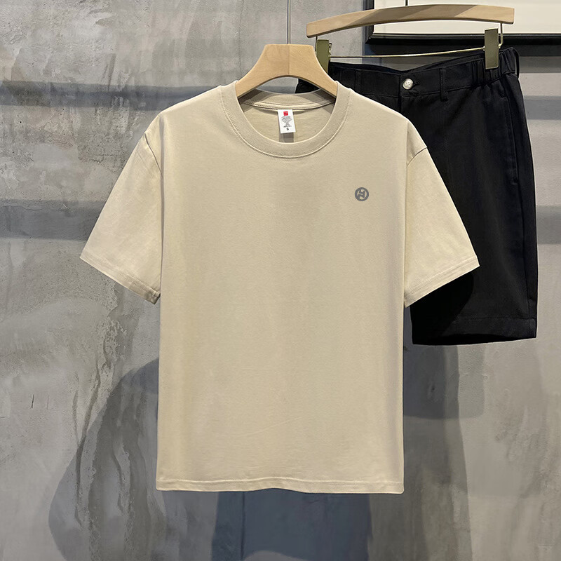 Playboy (PLAYBOY) 200g heavyweight American cotton short-sleeved T-shirt summer couple printed loose bottoming shirt t men's and women's top khaki cotton short-sleeved-1365 XL