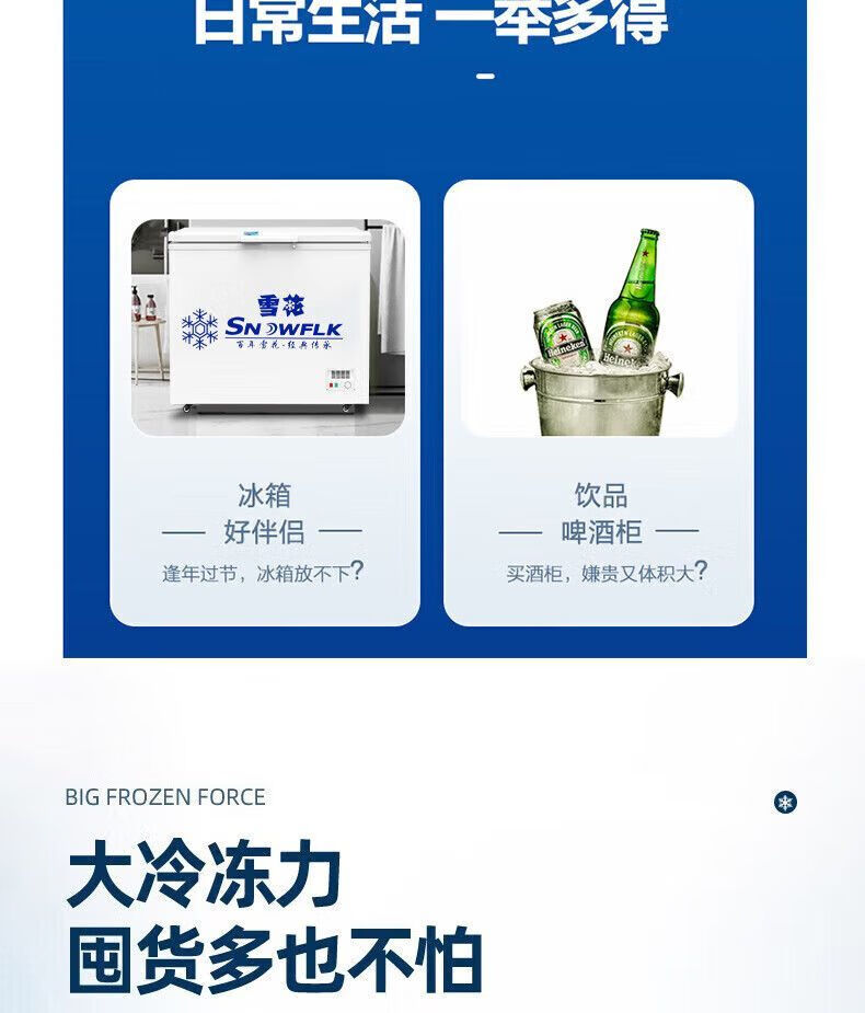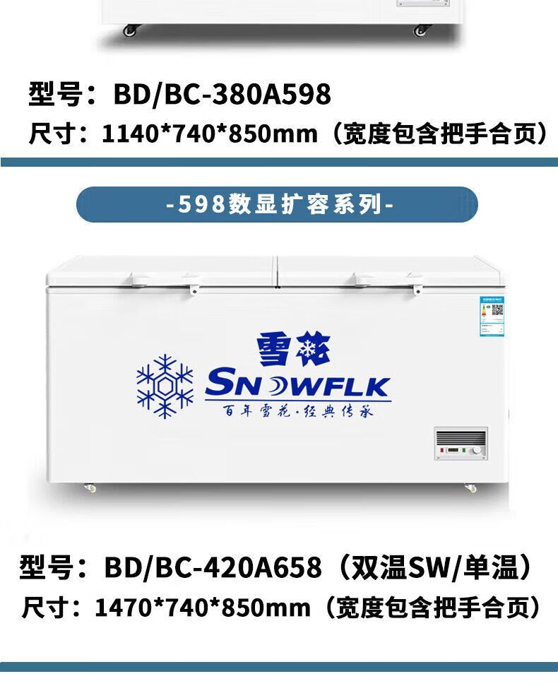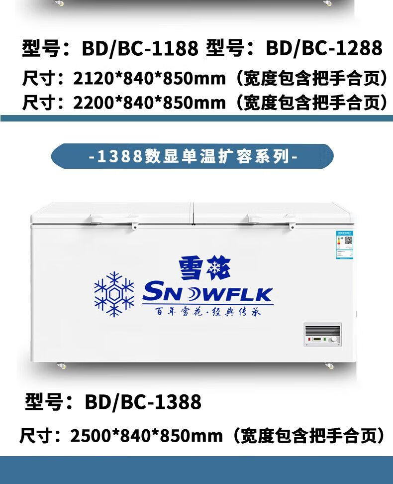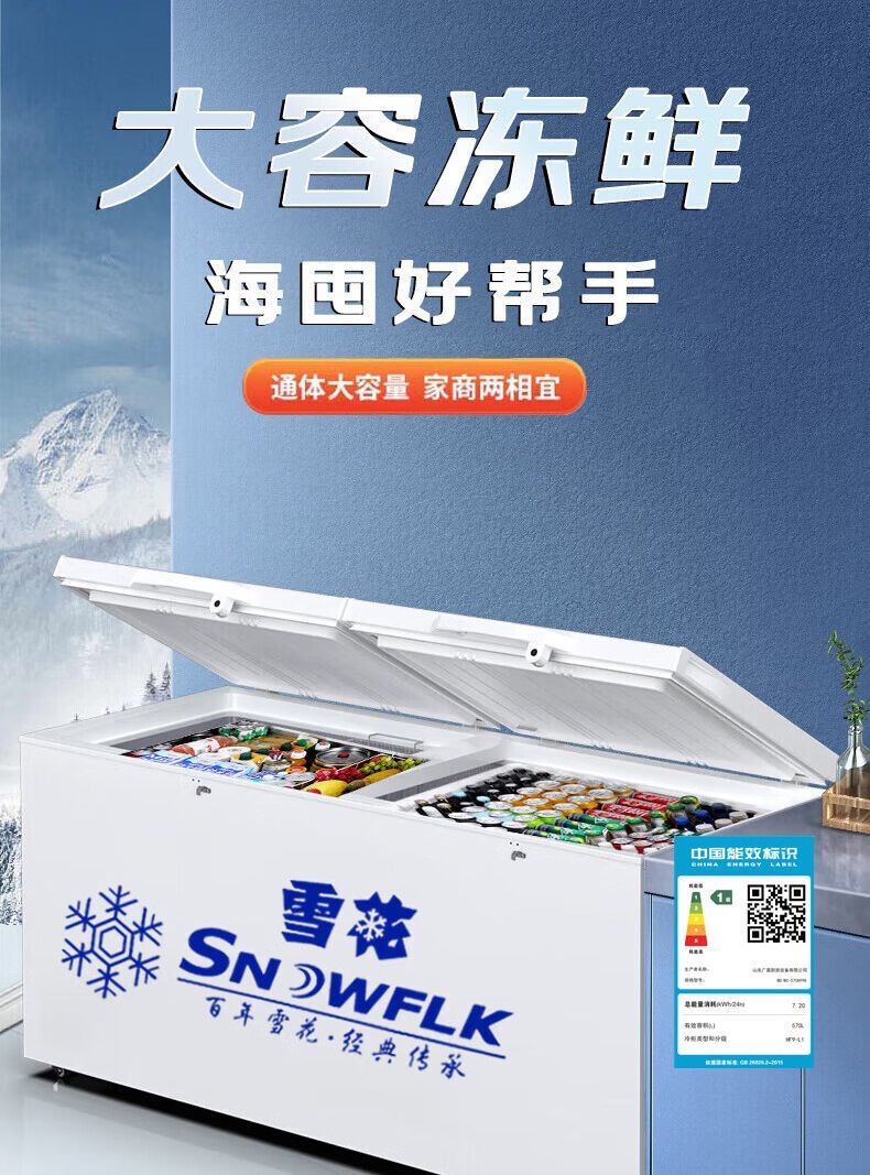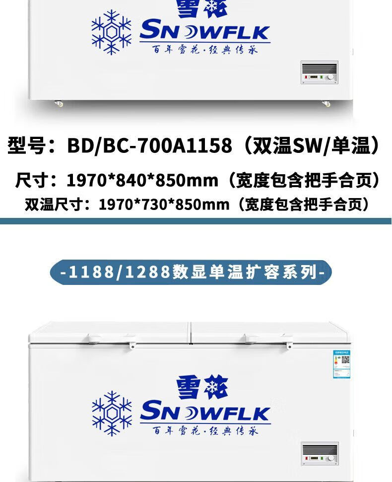 Snowflake Fresh Schrank-Kühlschrank mit Gefrierfach, Einzeltemperatur-Gefrierschrank, gewerbliches großes Fassungsvermögen, Heimkühlung, Stufe 1, 1048 Dual-Temperatur-Doppeltür-Gefrierschrank, digitales Display-Upgrade, 1 Liter