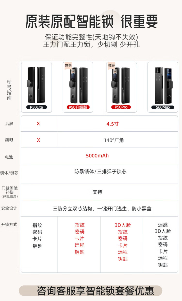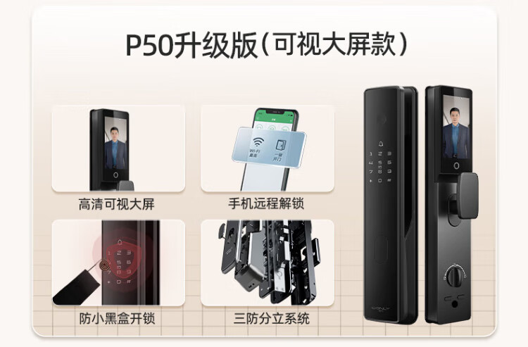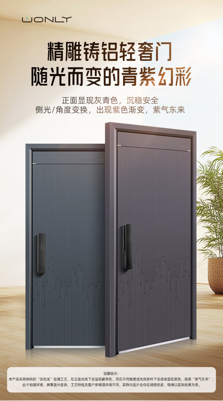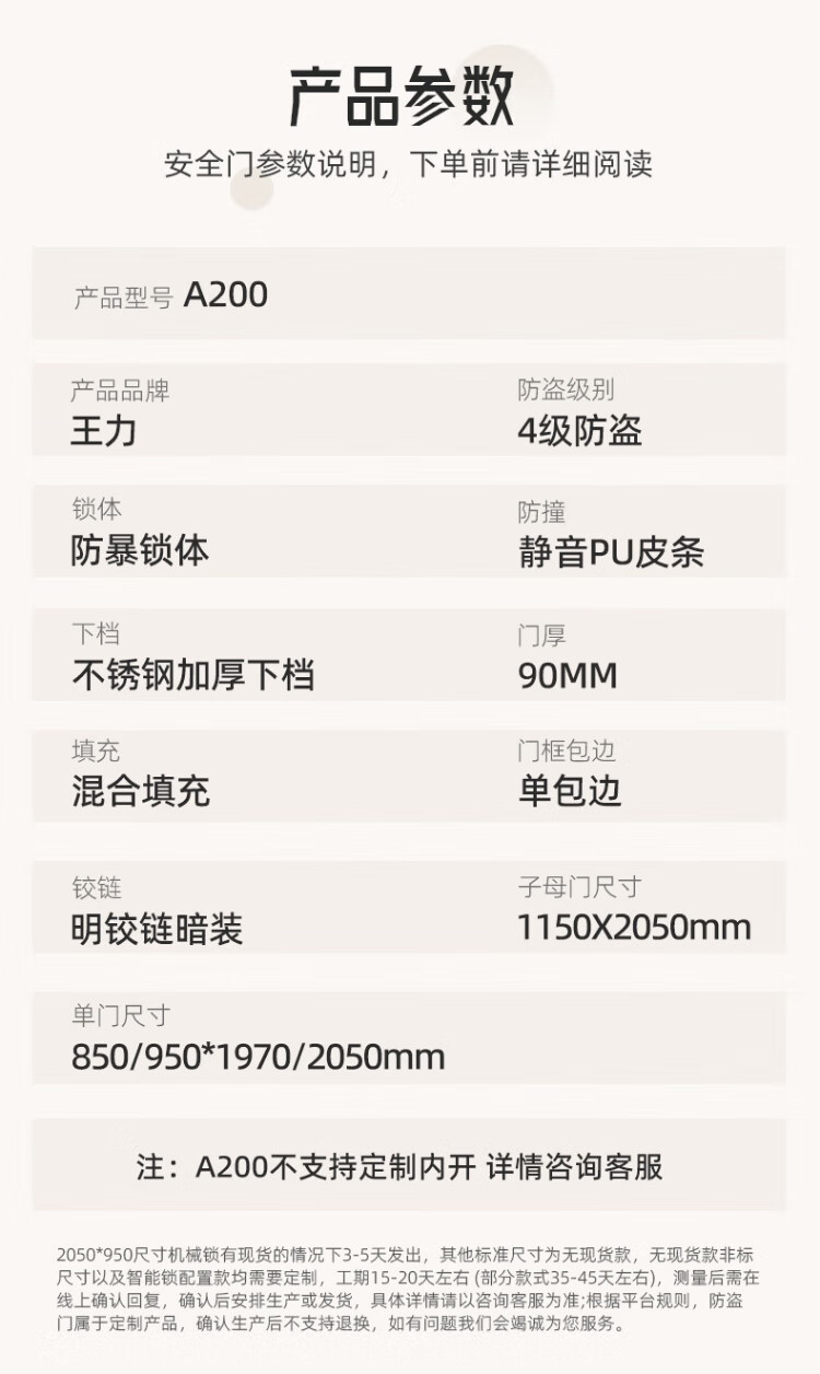 WL王力4级新款铸铝门防盗门甲级防夹手家用入户门进户门智能子母门单门大门A200 指静脉人脸带屏锁(P60Max) 单门2050*1050&2150*950