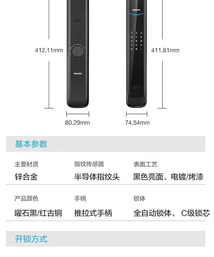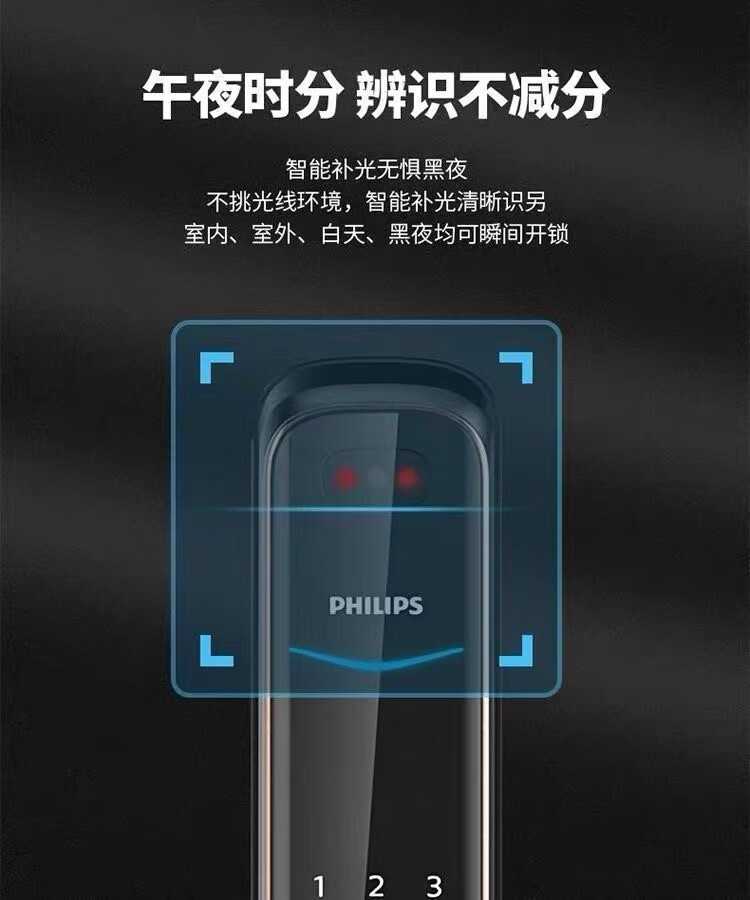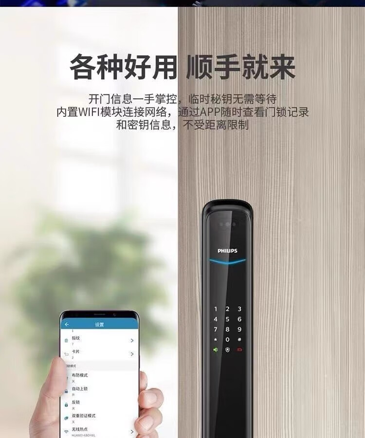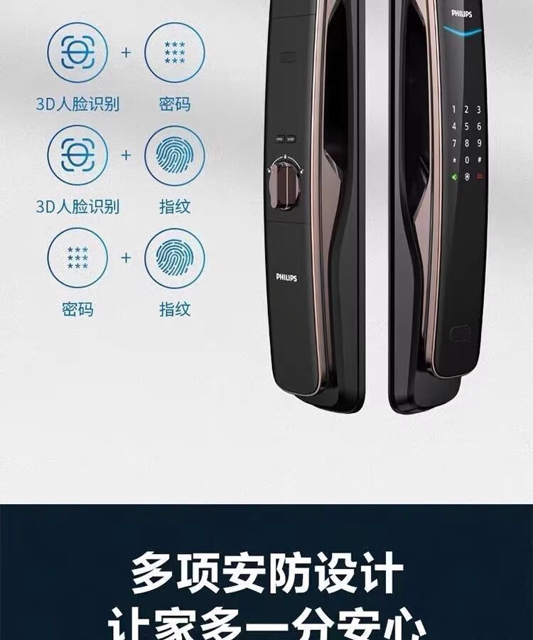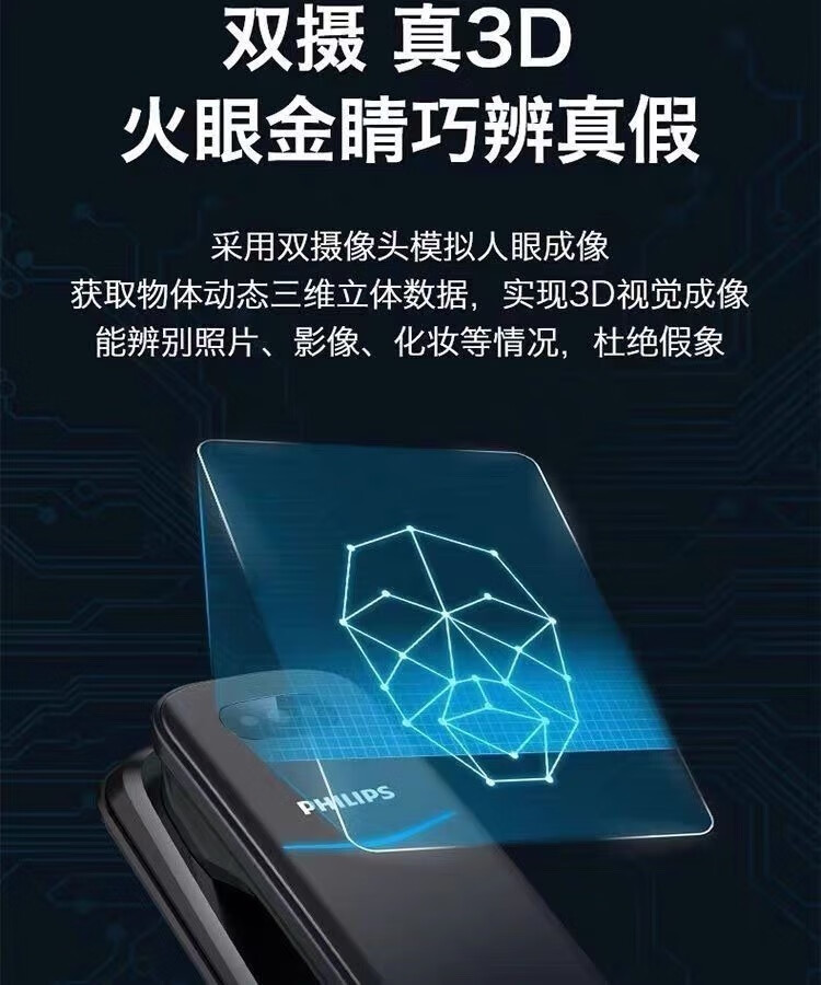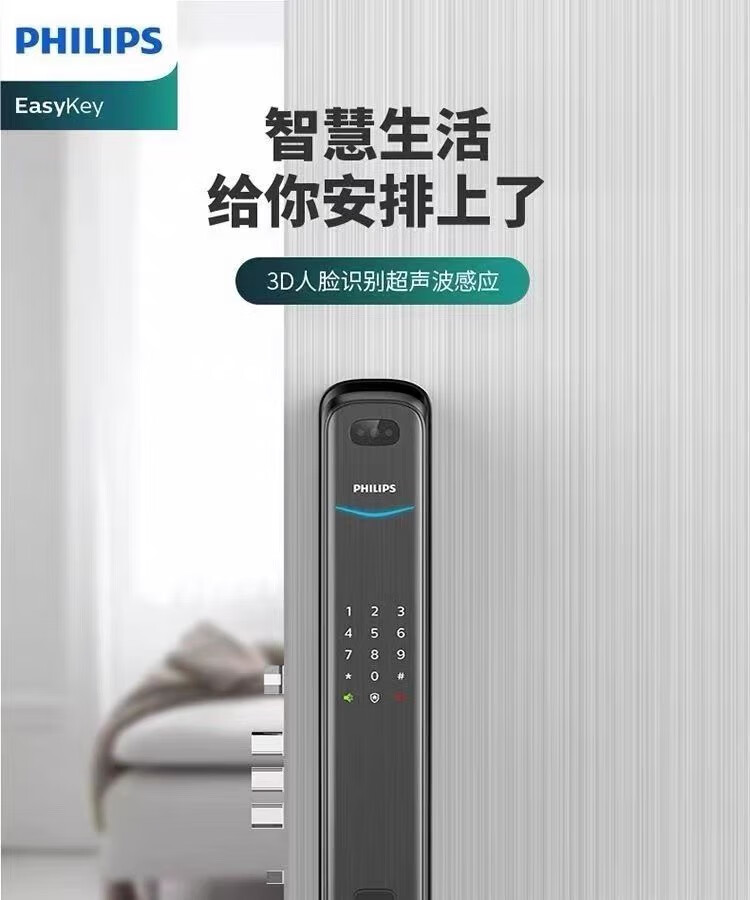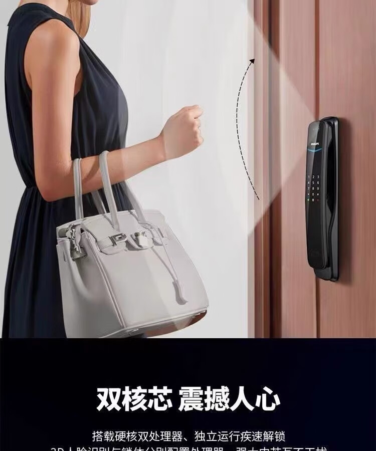 Cerradura inteligente Philips (PHILIPS) DDL702-8HW reconocimiento facial cerradura electrónica de puerta antirrobo para el hogar cerradura de huellas dactilares completamente automática para novia y novio 702-8 reconocimiento facial obsidiana negro clientes extranjeros lo instalan ellos mismos