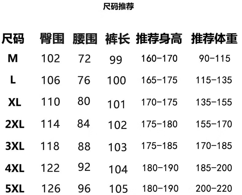 China (cm) 160-165/84-86 165-170 / 88-90 167-172 / 92-96 168-173 / 98-102 170-176 / 106-110