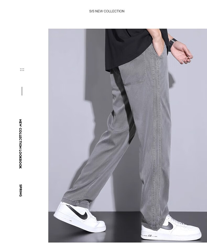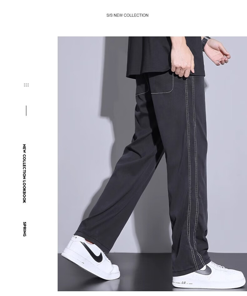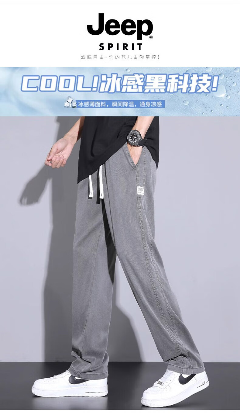JEEP SPIRIT Повседневные брюки Мужские летние прямые брюки из тонкого ледяного шелка Мужские спортивные брюки Мужские длинные брюки Мужские 1048 Черный M Рекомендуется 90-115 Джин Джин равен 0,5 кг