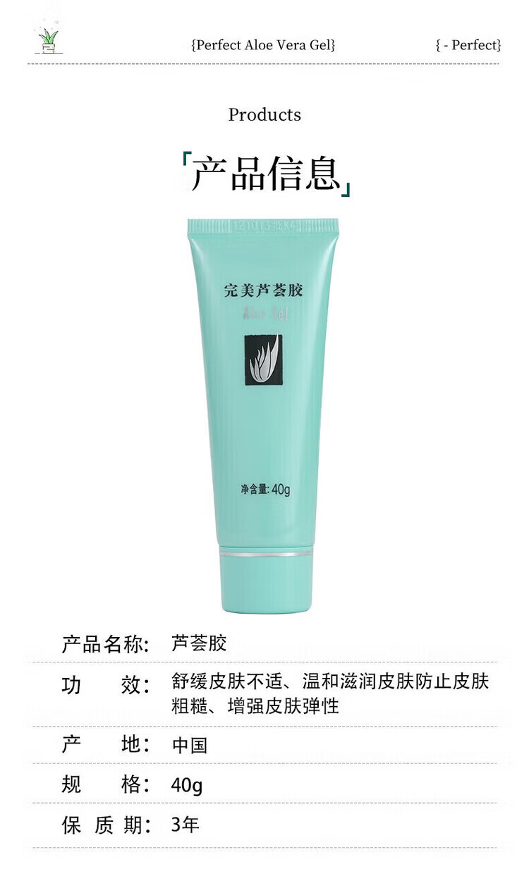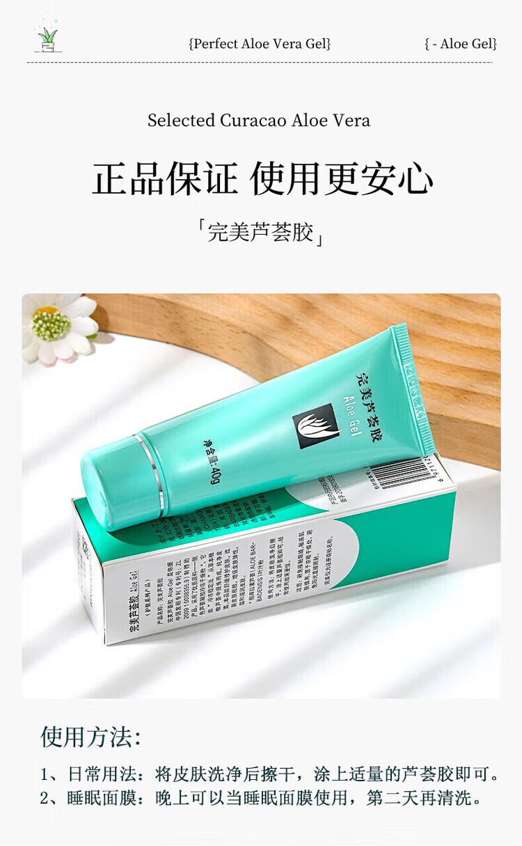 Perfect Aloe Vera Gel 40g Hydrating, Moisturizing, Gentle Nourishing, After-sun Repair, Firming Skin, Anti-Acne Essence Aloe Vera Gel, Perfect Aloe Vera Gel 100% 1 Bottle