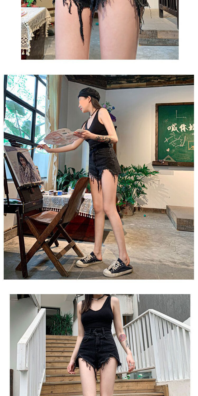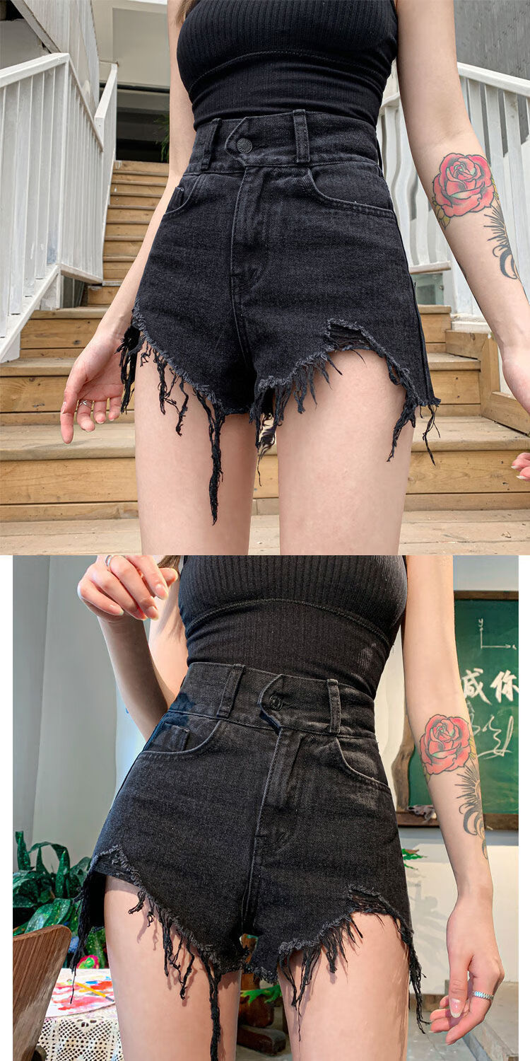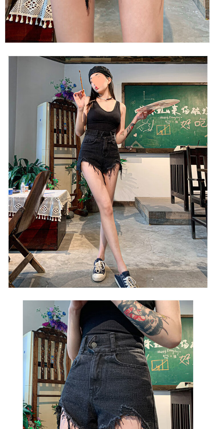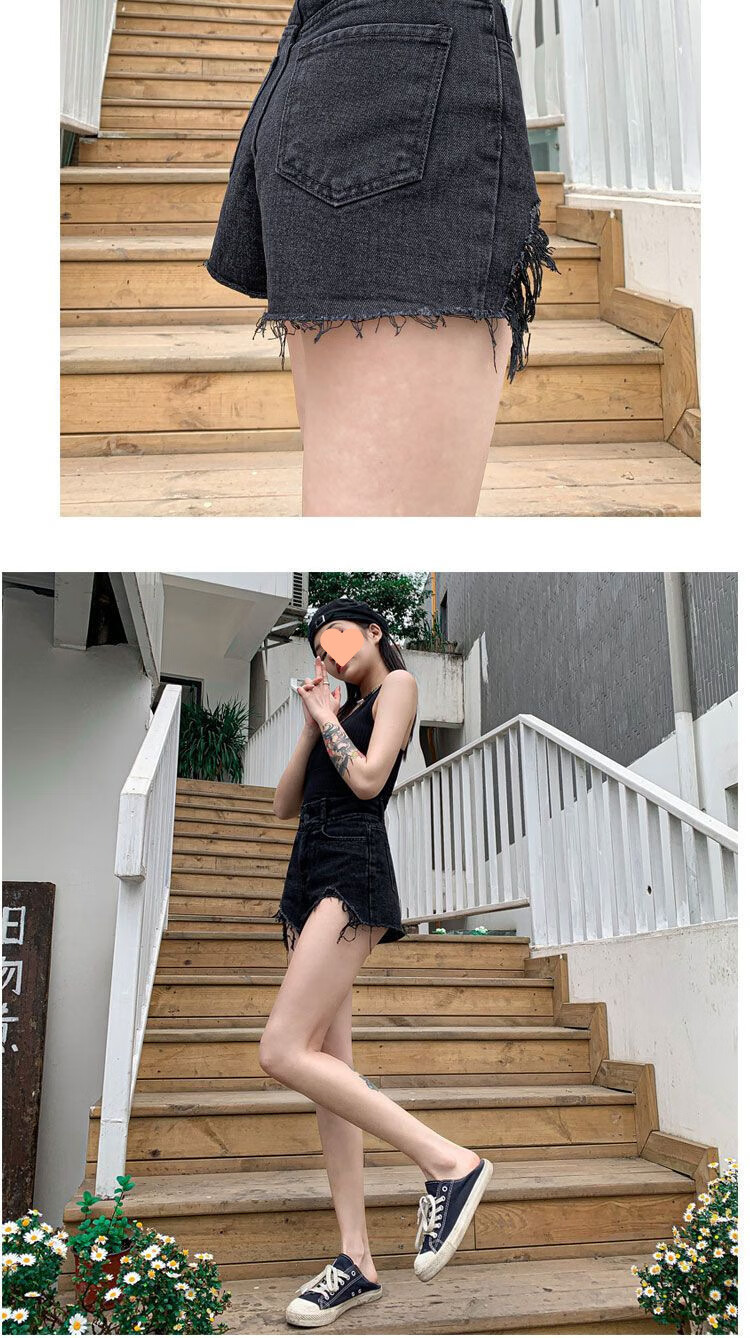 XCFREHT 9922 people have collected it. Summer new black denim shorts for fat mm women, large size, high waist, loose and slim, A-line, dark gray. Favorite store gives priority to delivery. L suitable for 105-115 Jin. Jin is equal to 0.5 kg.
