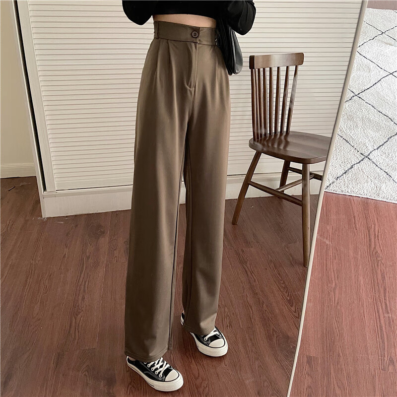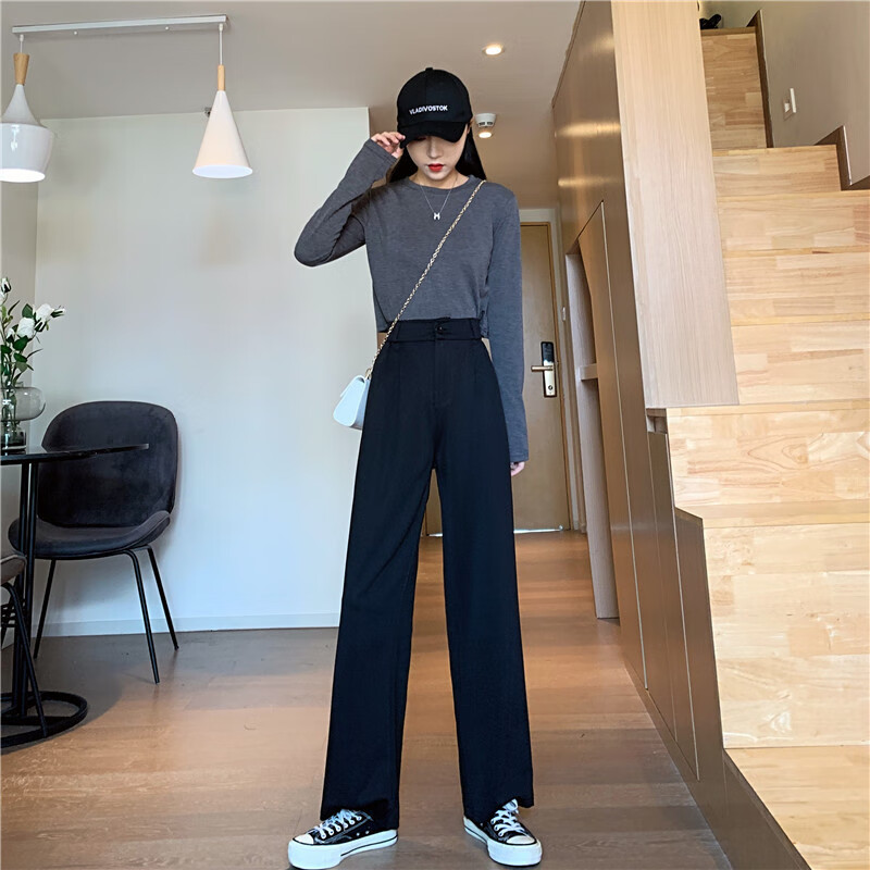 Pu Shui Fang Fang Pantalones De Pierna Ancha Drapeados De Estilo Coreano Que Adelgazan Los Pantalones De Traje De Cintura Alta para Mujer Pantalones Casuales 1047# Negro S