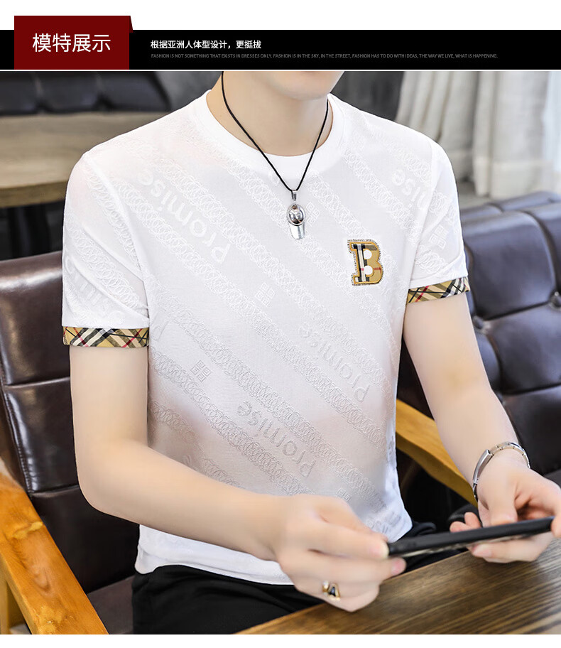 国际米澜品牌夏季男士冰丝短袖T恤半袖速干体恤薄款高弹性潮流帅气上衣服 698白色 2XL 推荐【130-155斤】