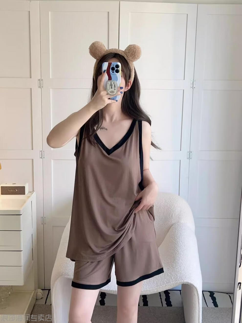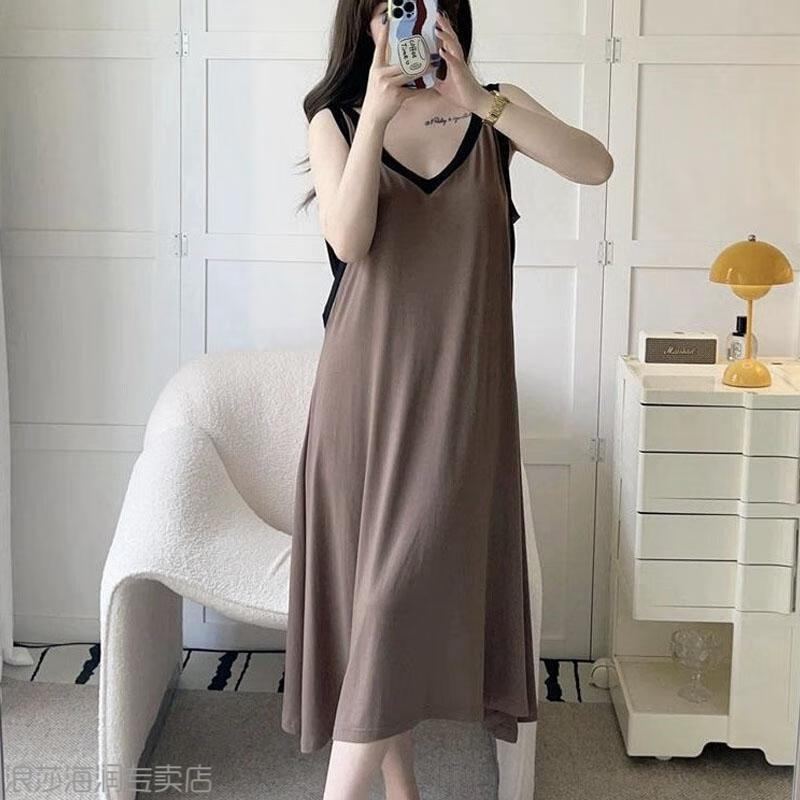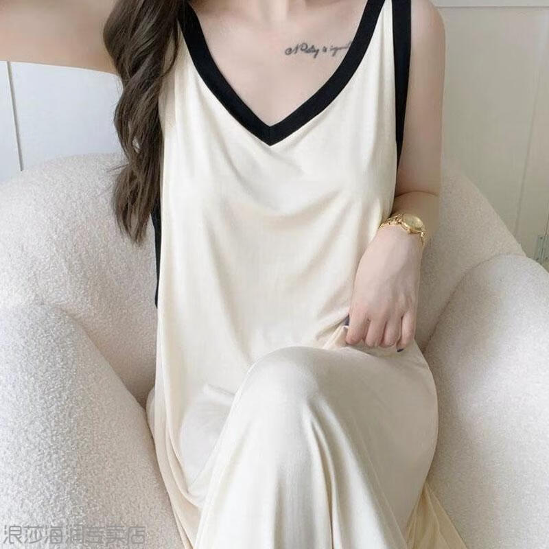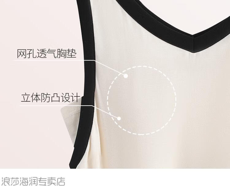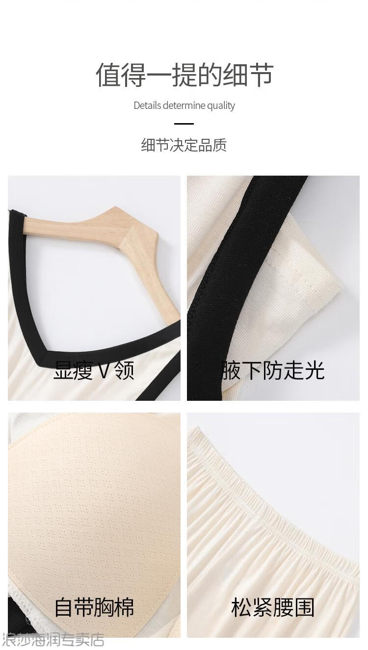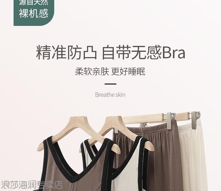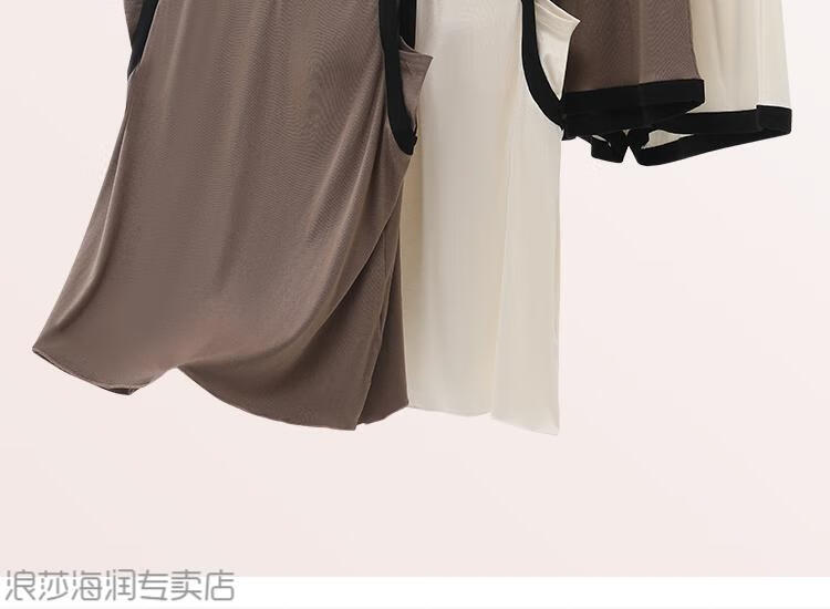 LangSha Light Luxurious Ice Silk Pajamas for Women Summer with Breast Pads New Style Vest Suspenders Home Clothes Large Size Cotton Silk White + Brown (Pajama Set) XL