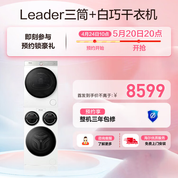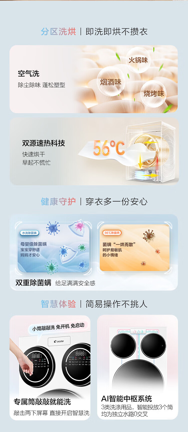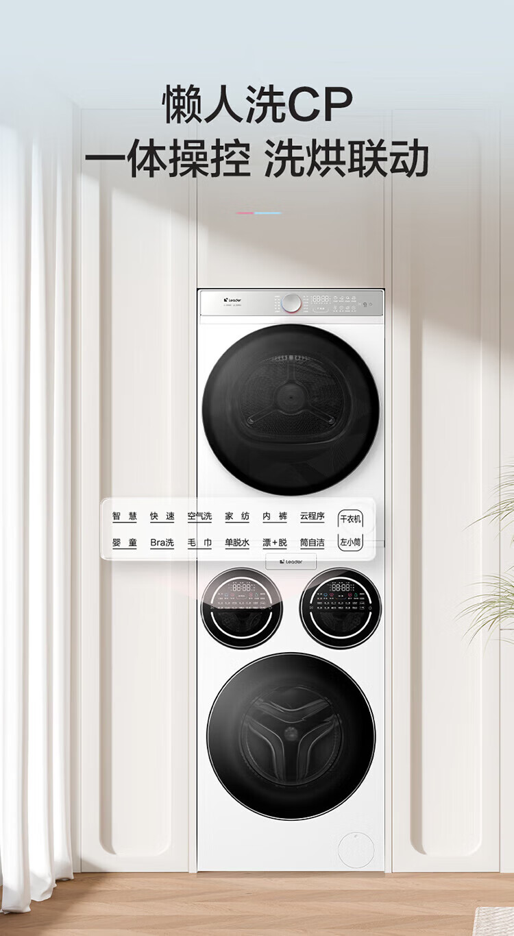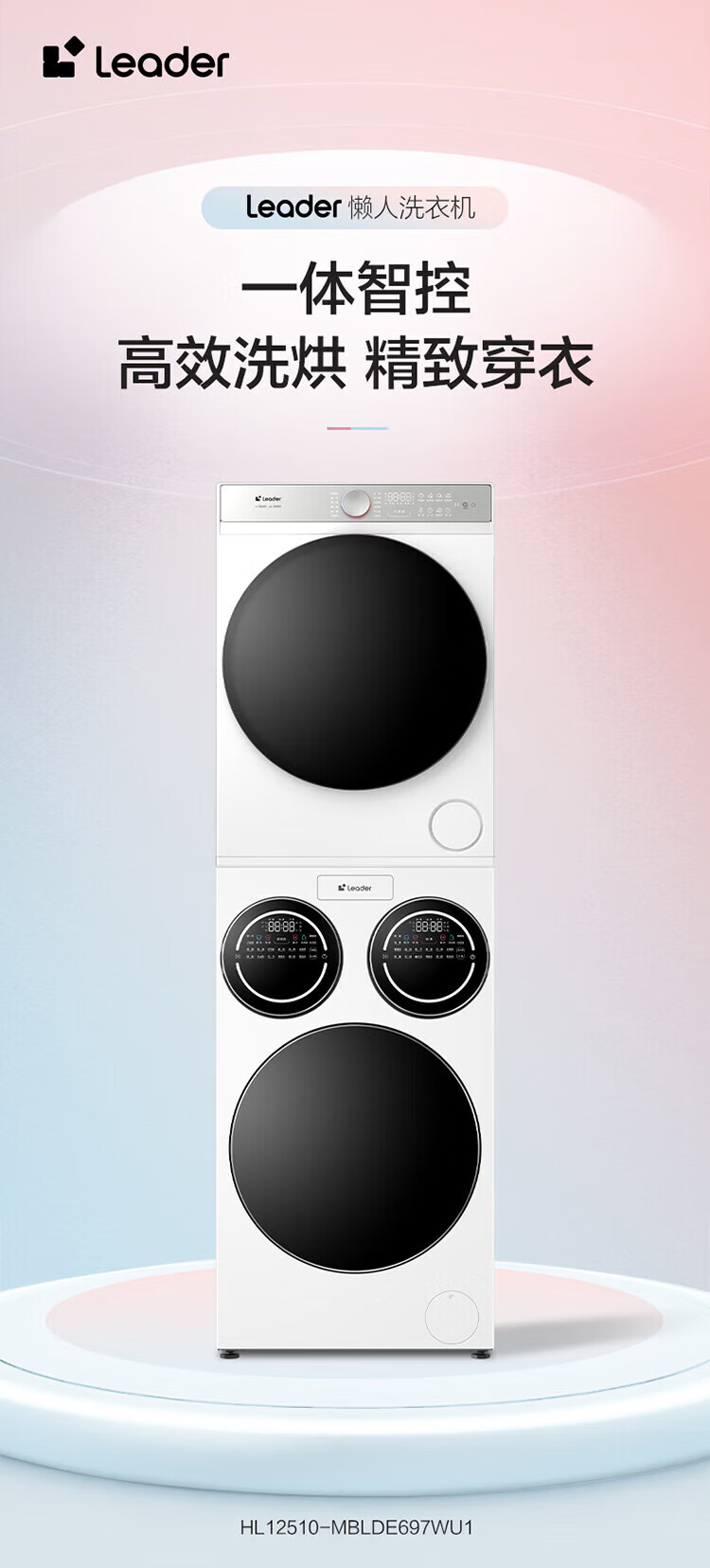 Leader Lazy Three-tub Washing and Drying Set ProMax National Subsidy Produced by Haier Smart Home Three-tub Lazy Quick Cleaner 0 Hand Wash Lin Gaoyuan's Same Style Washing Machine + Dryer HL12510-MBLDE697WU1