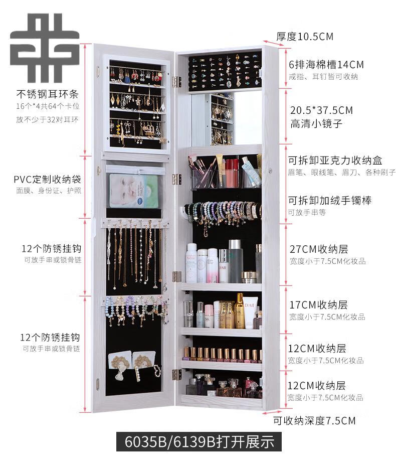 Haojizhen miroir pleine longueur, miroir pleine longueur, armoire de rangement murale, armoire de maquillage murale, armoire de rangement, miroir intelligent avec lumière 6035 6198 modèle en bois massif amélioré - jaune pointe dorée Autres Oui