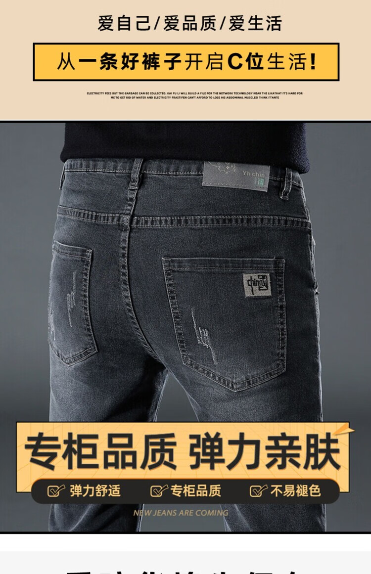 Baisi Dun Jeans Herren Sommer 2025 Neue gewaschene dünne gerade Herrenhosen Sommer dünne trendige Marke lässige lange Hosen 1049 Grau 28