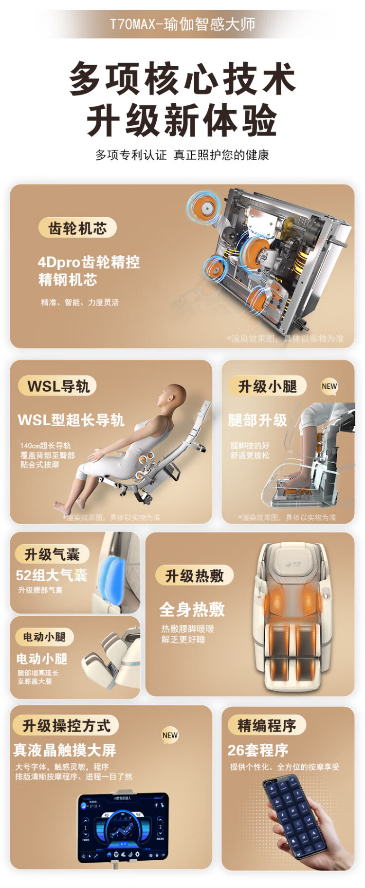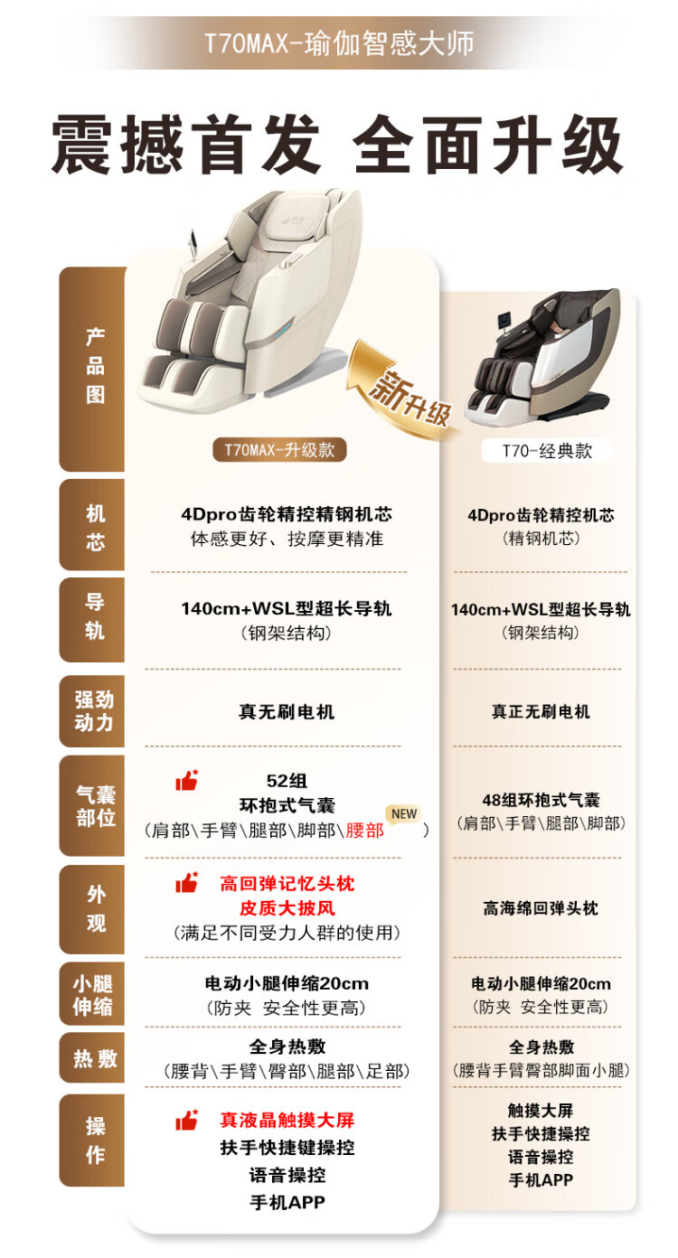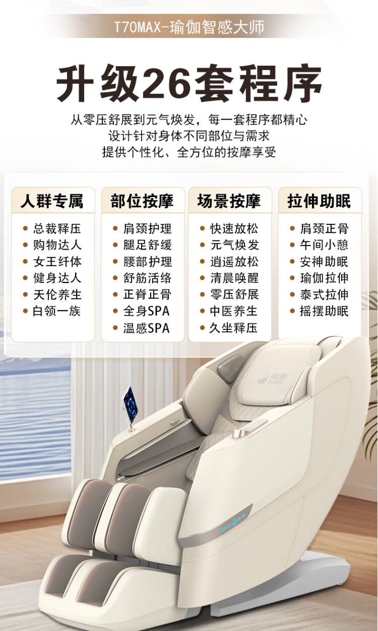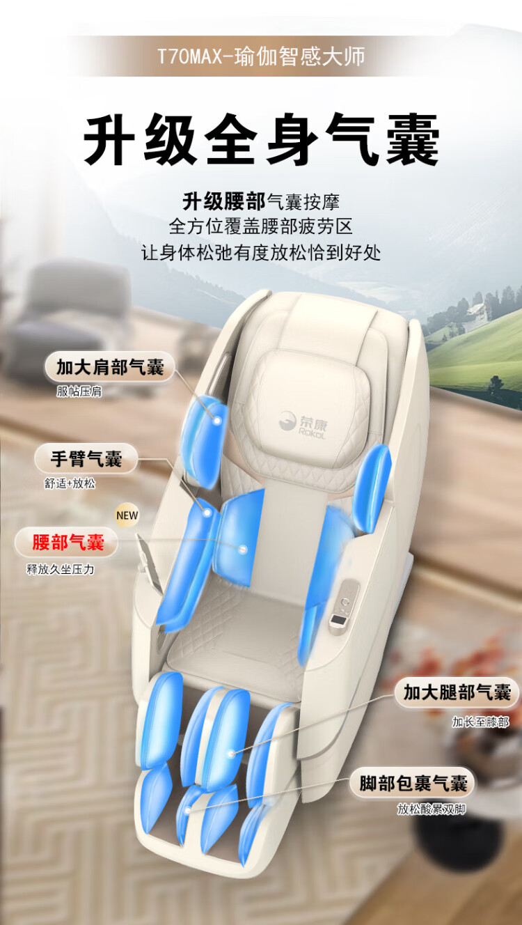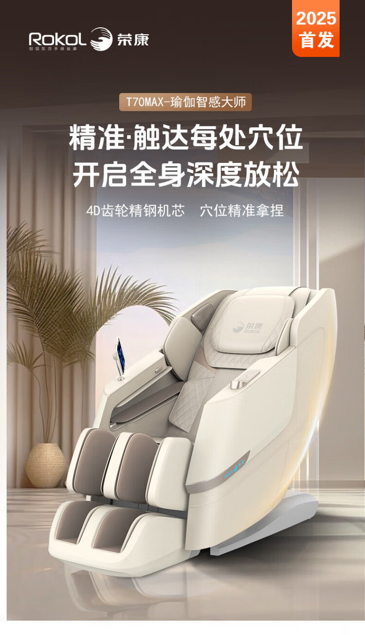 Rongkang Double Eleven Hot Selling T70Max Smart Massage Chair 2025 New Top Ten Brand Full Body 4D Gear Movement Zero Gravity Home Massage Sofa 25 Years New Product Launch - Twilight Apricot