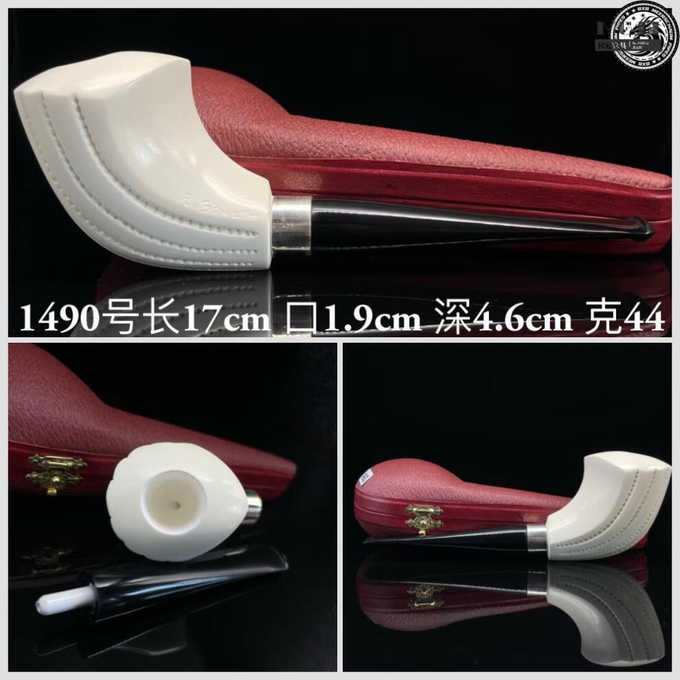 High-end Turkish meerschaum pipe handmade by a master with double silver cavity and large chamber made of special snowflake raw stone 1477