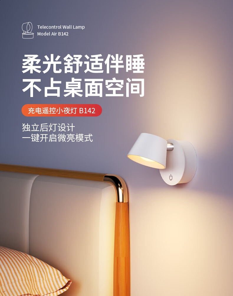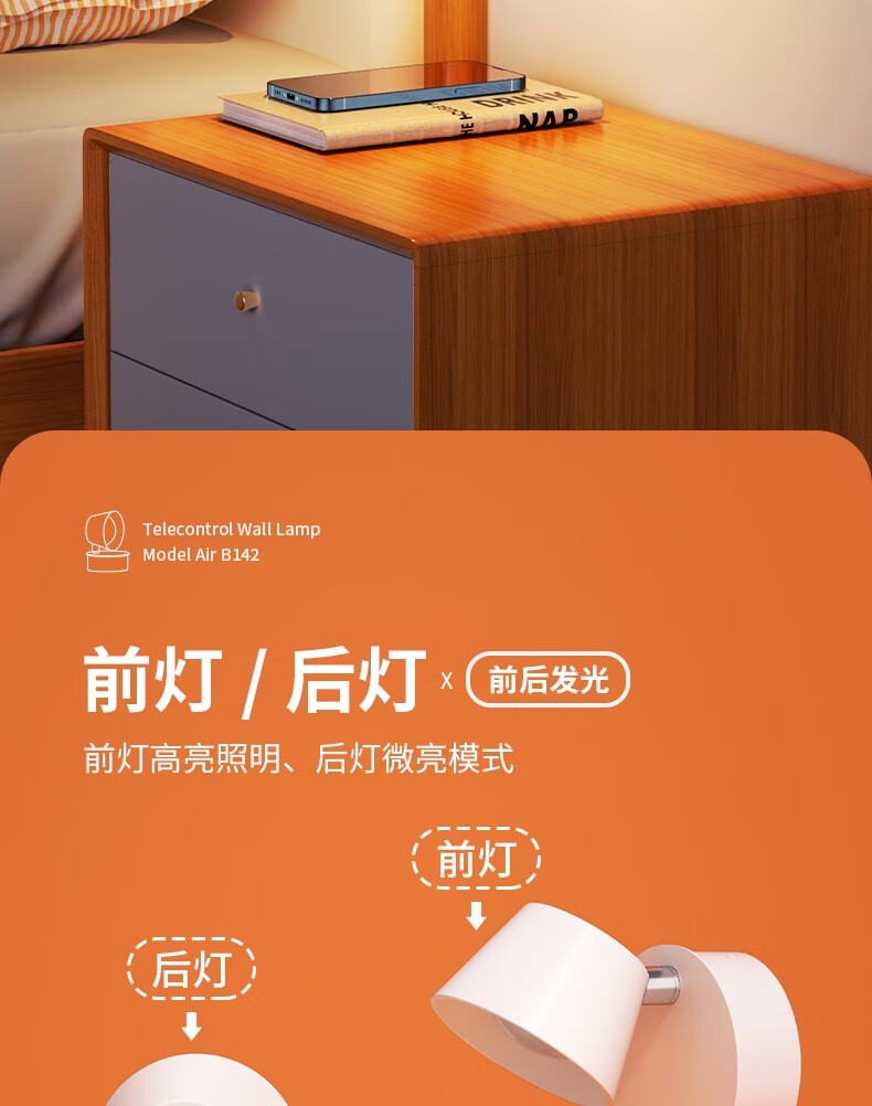 Nachttisch-Nachtlicht, wiederaufladbar, Hauptschlafzimmer, Schlafen, Nachttisch, Lesen, magnetische Wandlampe, Heim-Fernbedienung, Strahler, keine Verkabelung, Knopftyp – 3000 mAh, kann 12–140 Stunden lang hell sein