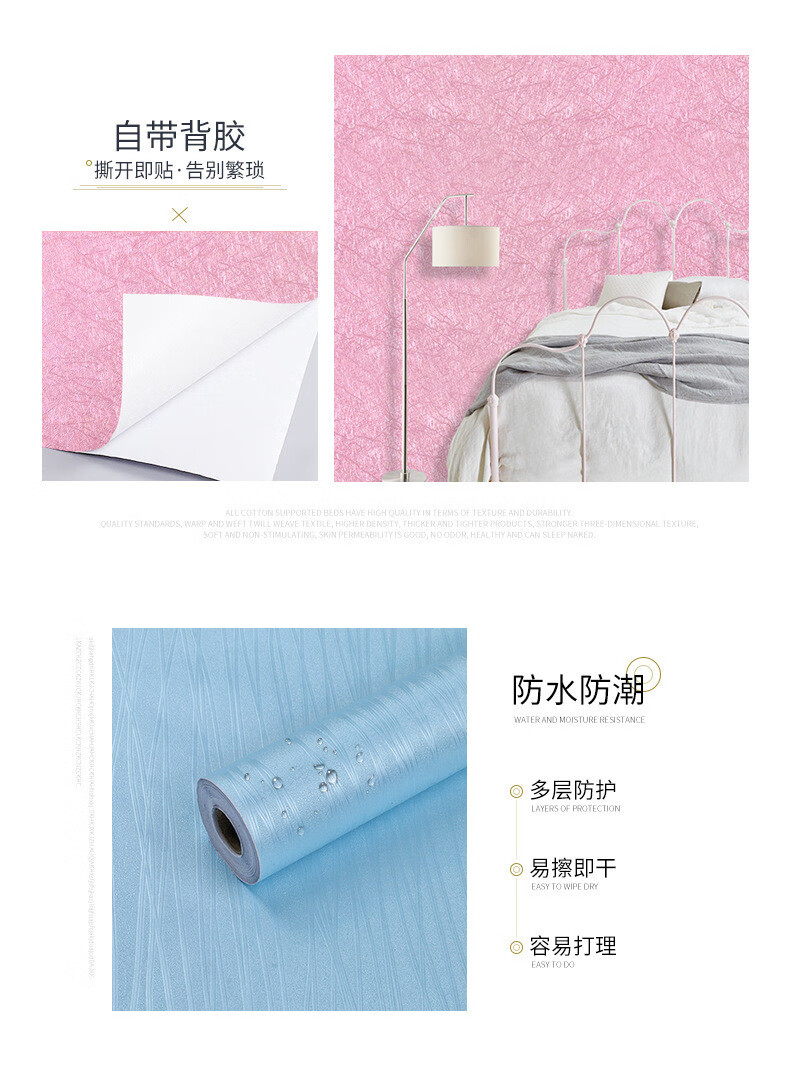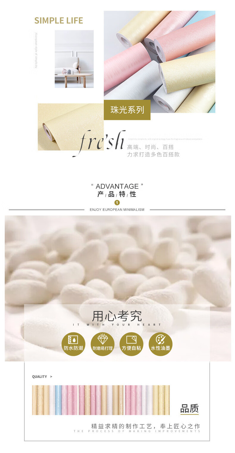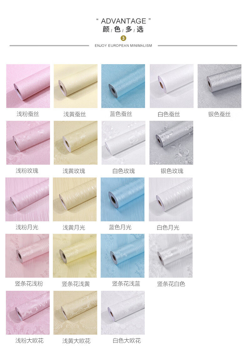XMSJ Silk PVC Wallpaper Self-adhesive Solid Color Wall Cloth European Pearlescent Bedroom Living Room Renovation Sticker 9903-2 White Rose 45CM*10M
