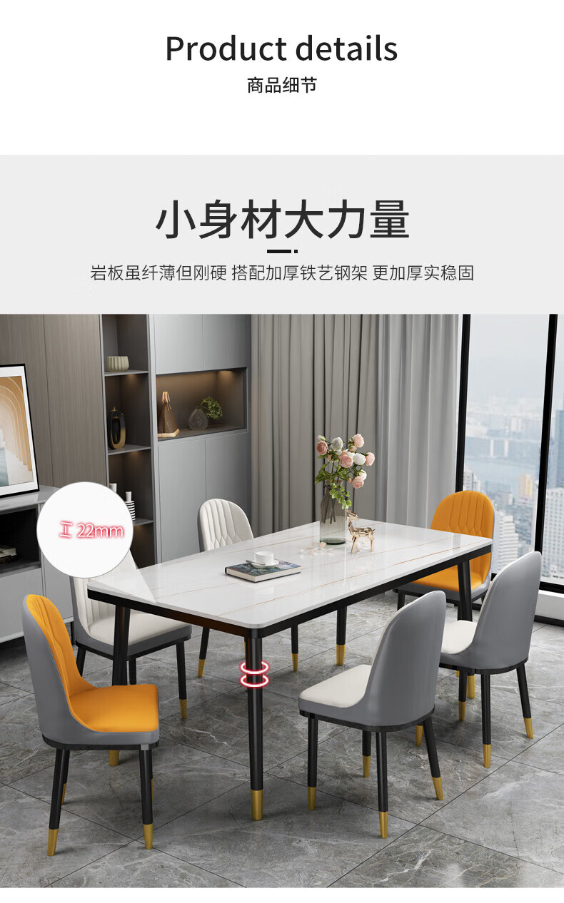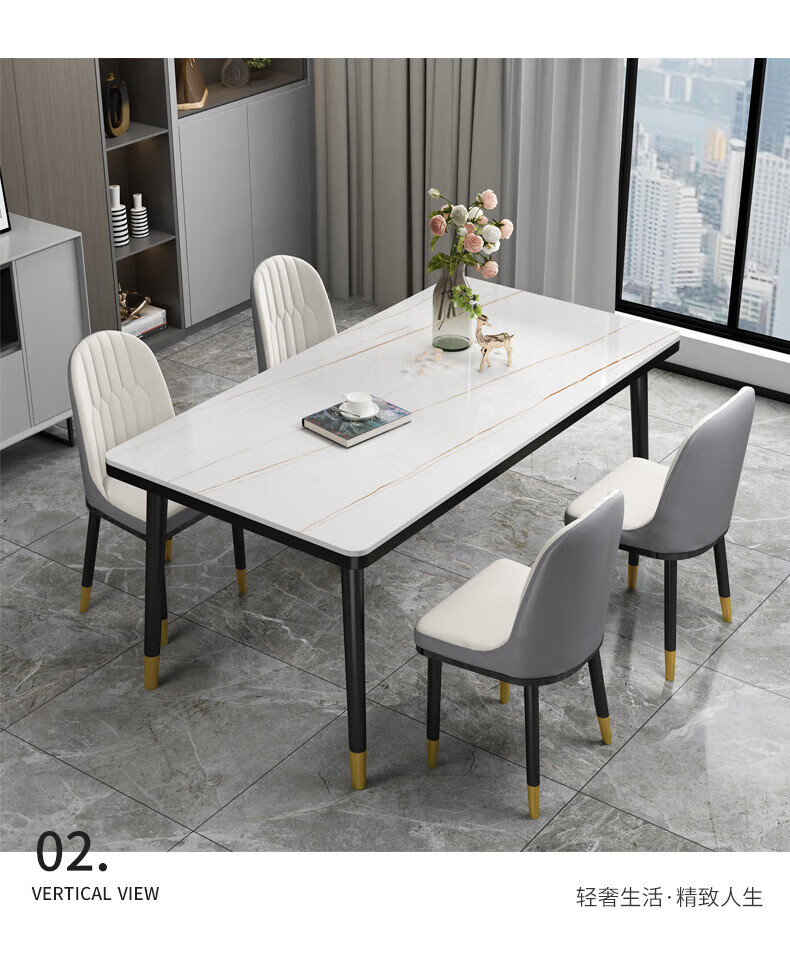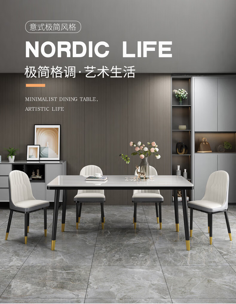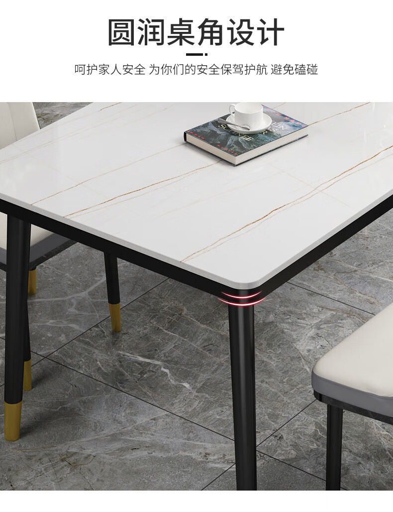 虞萌馨迪岩板餐桌家用小户型现代简约轻奢吃饭桌子长方形大理石餐桌椅组合 雪山白12140*80餐桌+六椅