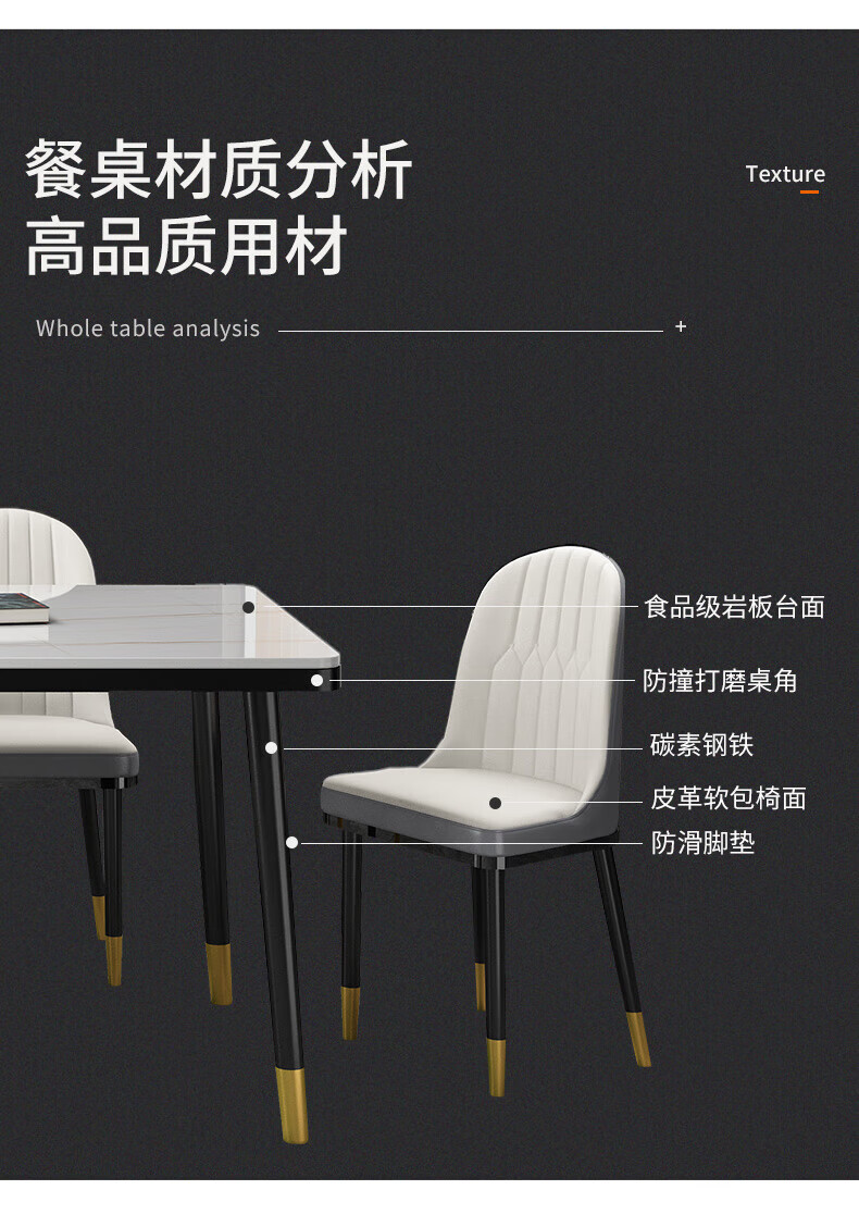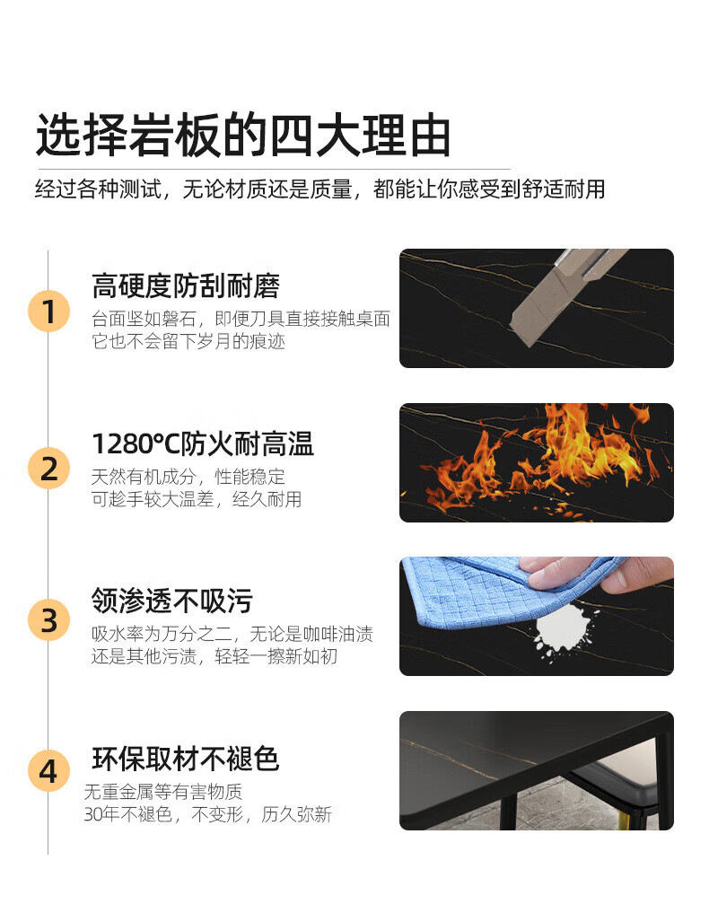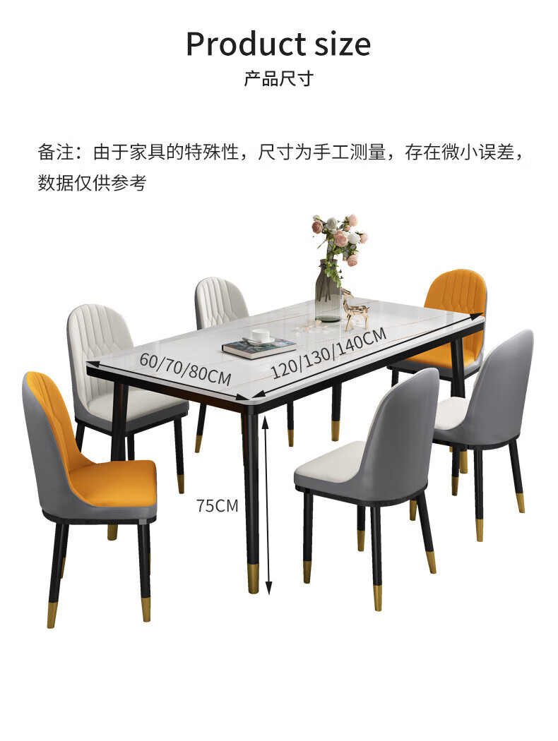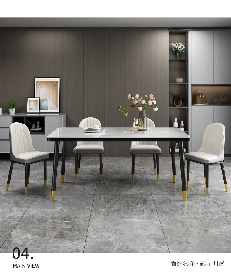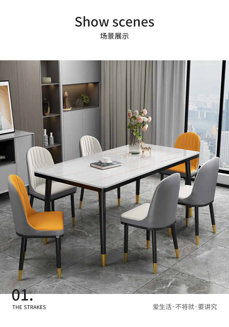 虞萌馨迪岩板餐桌家用小户型现代简约轻奢吃饭桌子长方形大理石餐桌椅组合 雪山白12140*80餐桌+六椅