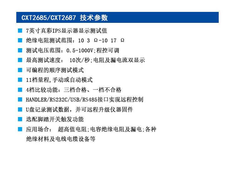 倪之尔欣阳/B绝缘电阻仪CXT2687/5高阻仪电容绝缘超值电阻 CXT2687【1kV_100PΩ】超大屏