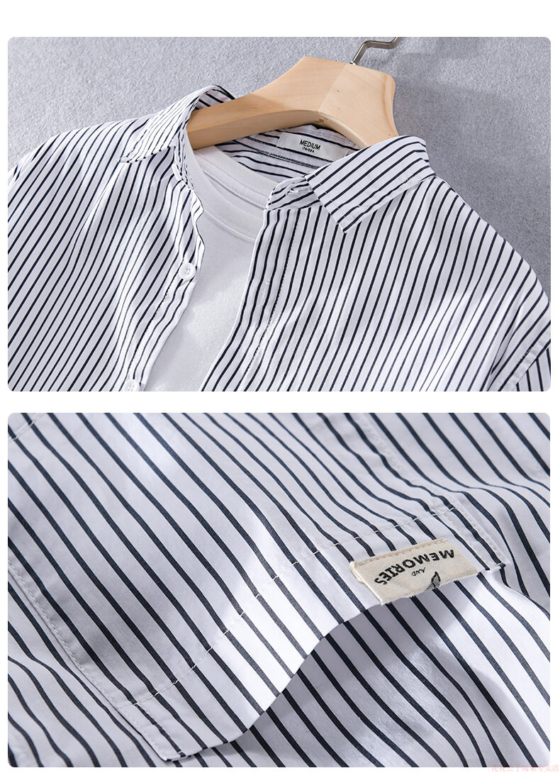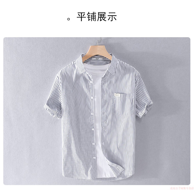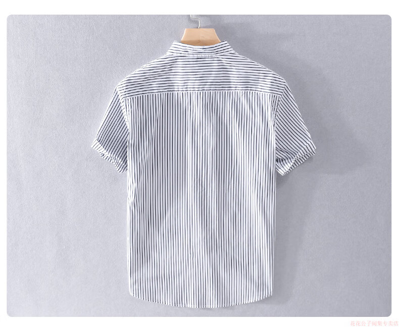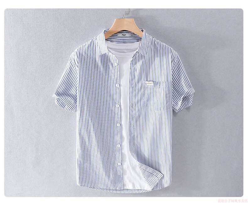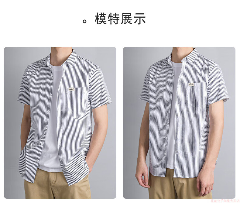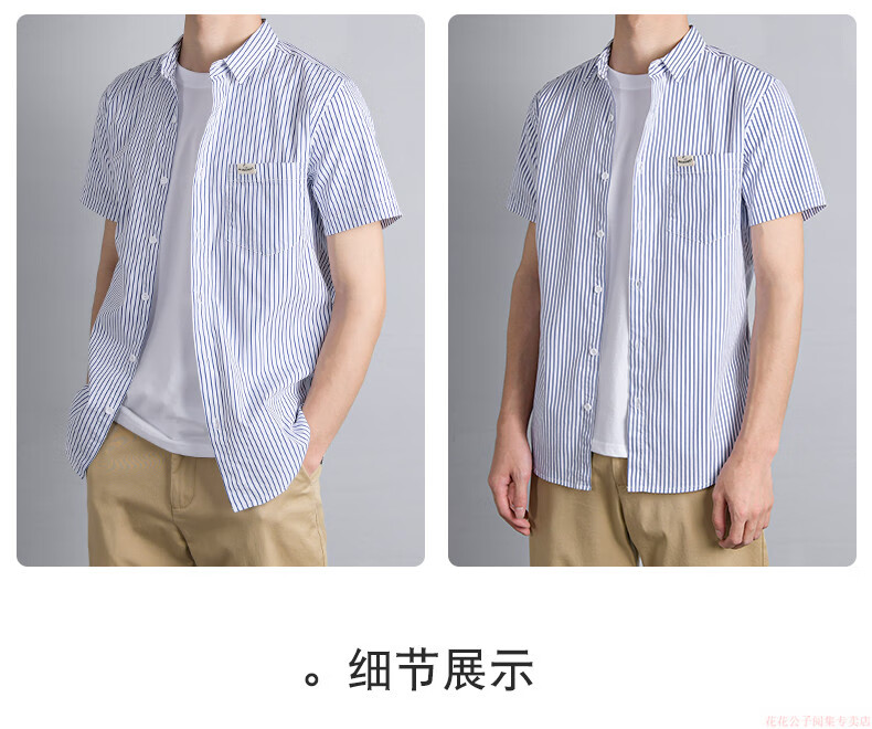 花花公子(PLAYBOY)夏季薄款衬衫领短袖T恤男宽松体恤免烫条纹半袖带领口袋上衣夏装 9721白色 M