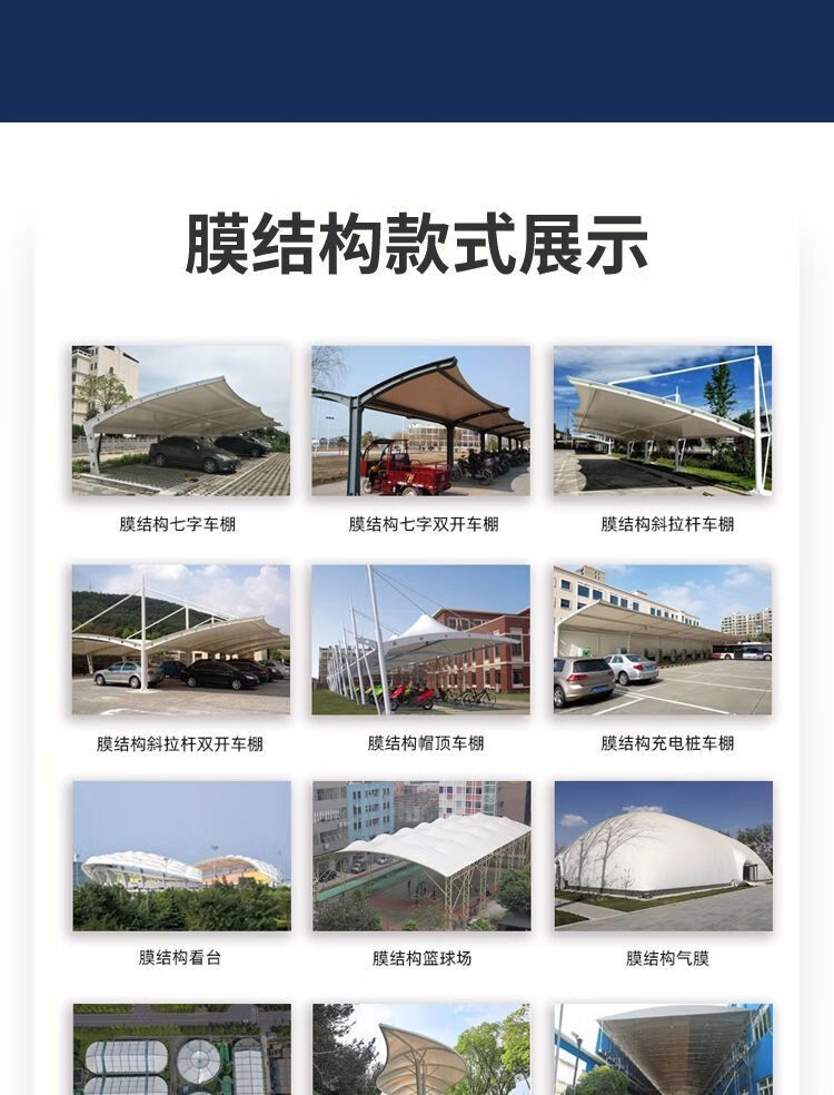 Processing pvc/PVDF membrane cloth parking shed membrane cloth tensile membrane structure awning car shed landscape knife scraper viewing tarpaulin 1050 grams of membrane cloth per square meter PTFE membrane material