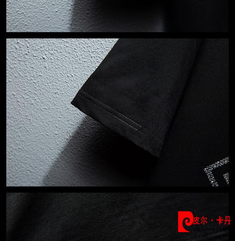 Pierre Cardin 2025 new summer men's clothing trendy brand hot diamond round neck short-sleeved T-shirt youth handsome versatile trendy tops for men 1048 black S (suitable for 90-110 Jin Jin is equal to 0.5 kg)