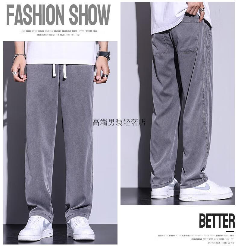 Septwolves High-End-Hosen für Männer 2025 neue Modemarke gerade lose Herrenhosen Tencel weites Bein Herren lange Hosen Herren Sommer Business HJ1048 schwarz + HJ1048 hellblau M 28 Größe