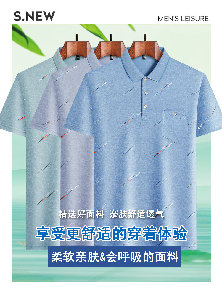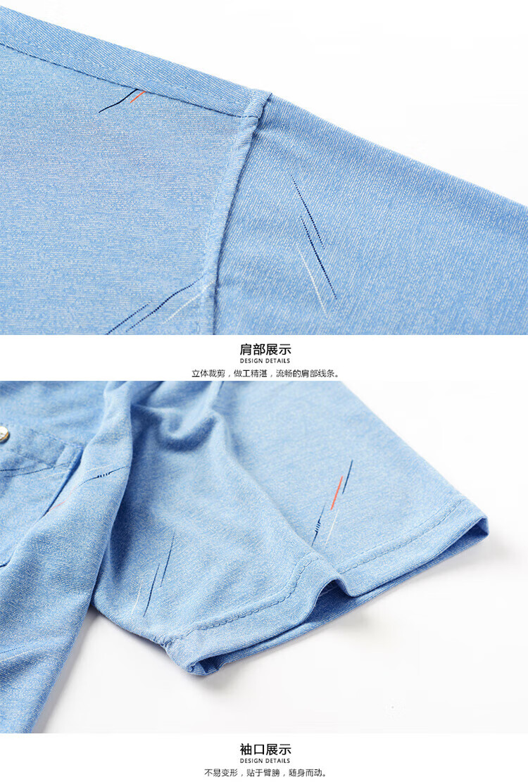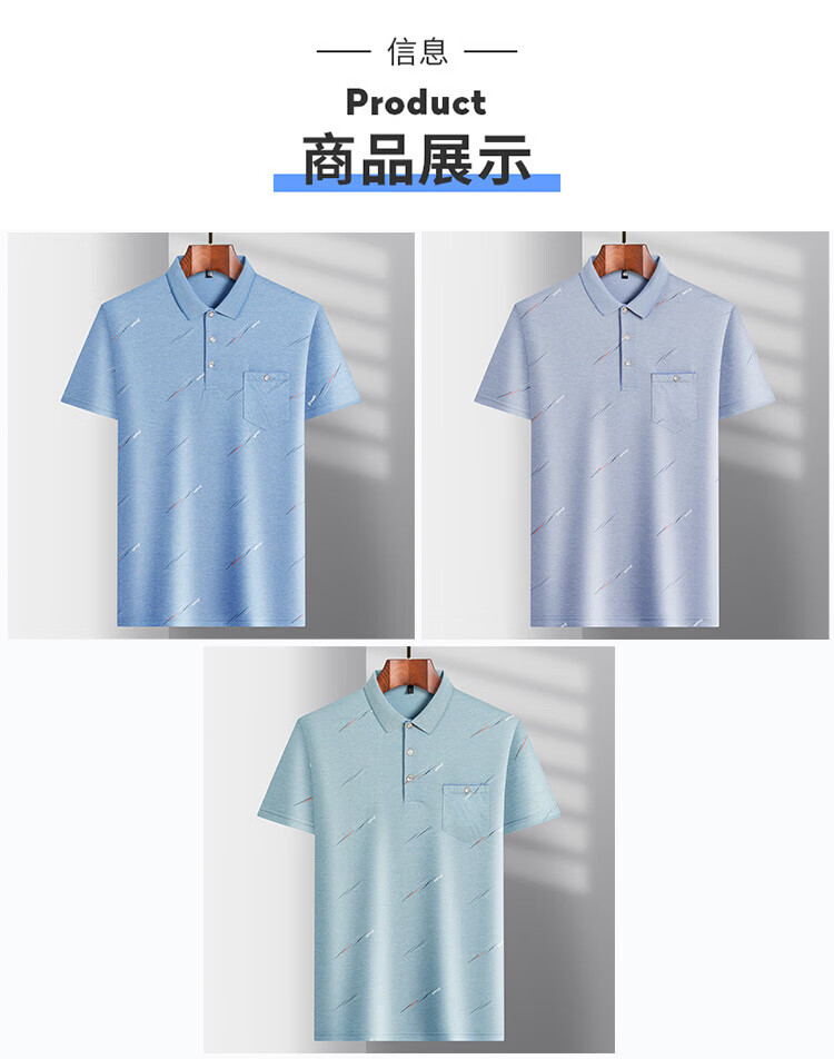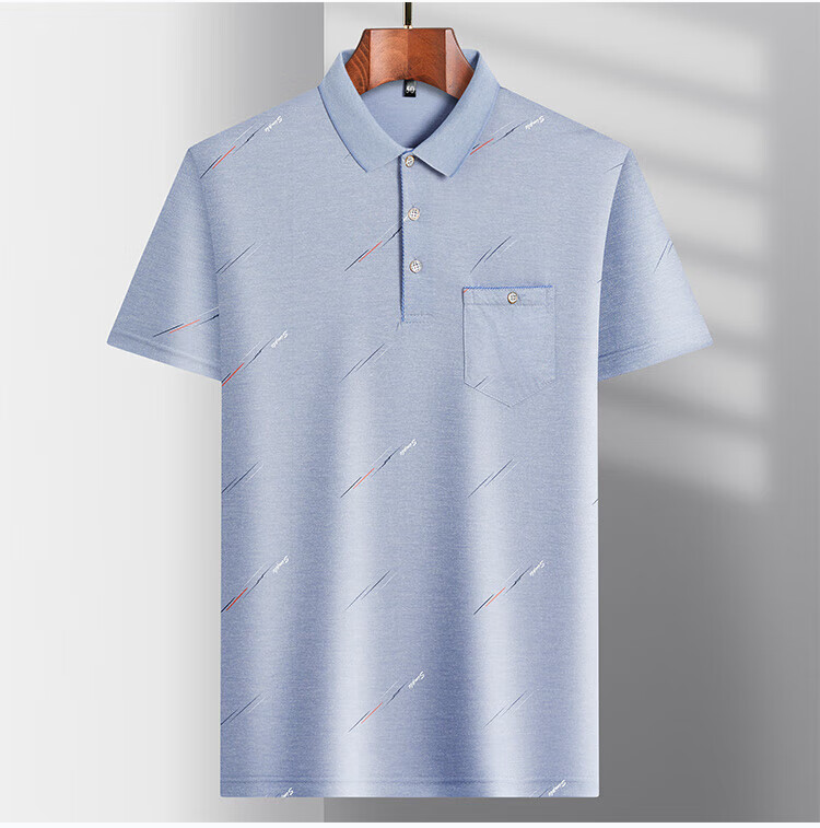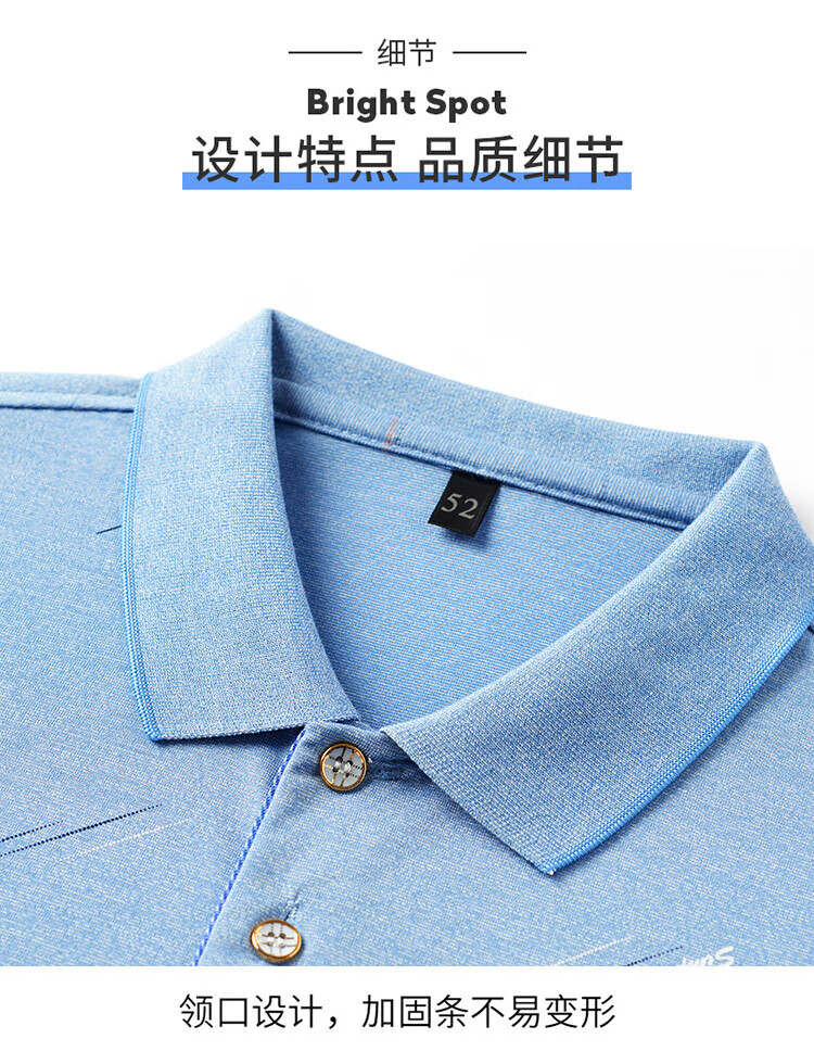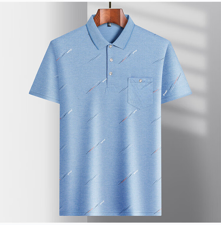 SEPTWOLVES middle-aged men's lapel short-sleeved T-shirt daddy summer thin polo shirt middle-aged and elderly ice silk half-sleeved men's T-9923 blue real pocket M 48/165
