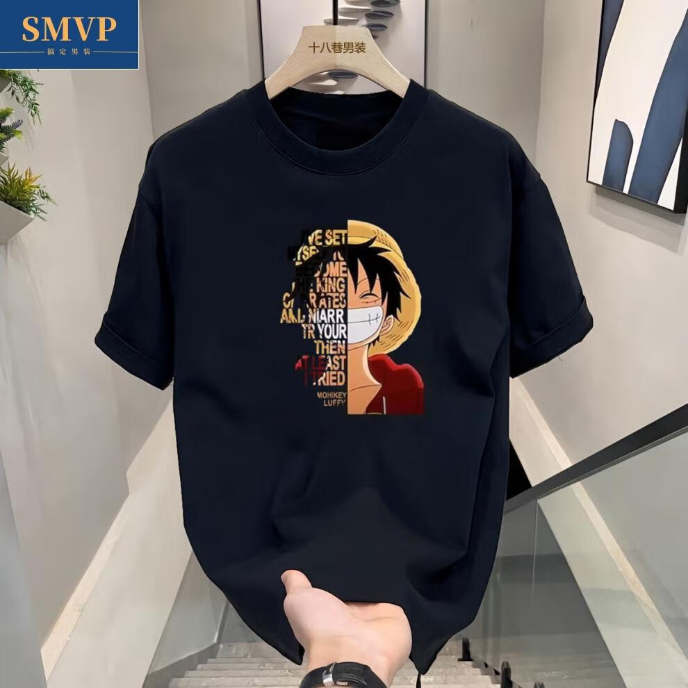 SMVP海贼王短袖t恤日系草帽路飞动漫周边男夏季青少年学生圆领T恤上衣 .V1048黑色 M