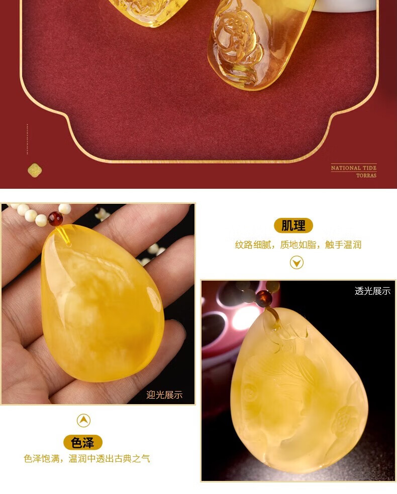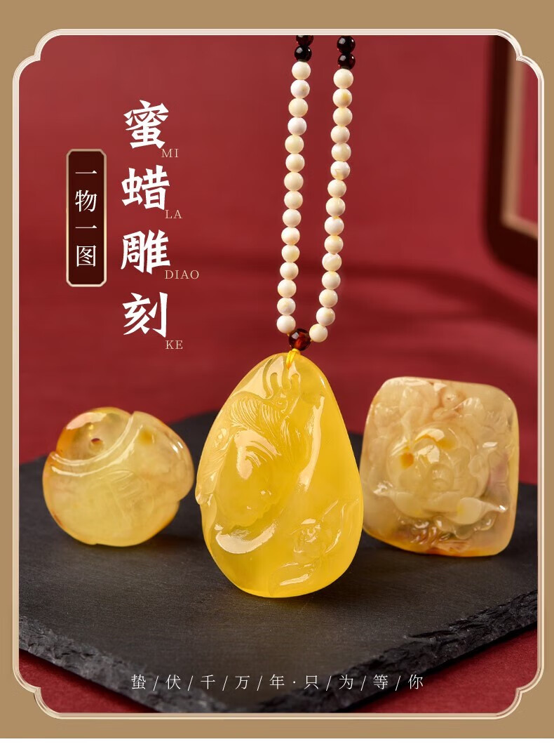 OIDSG Fat Dong Lai quality beeswax carving pendant one thing one picture Russian material yellow honey amber Guanyin Maitreya Buddha 520 lover jp5409
