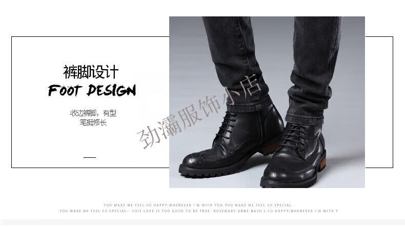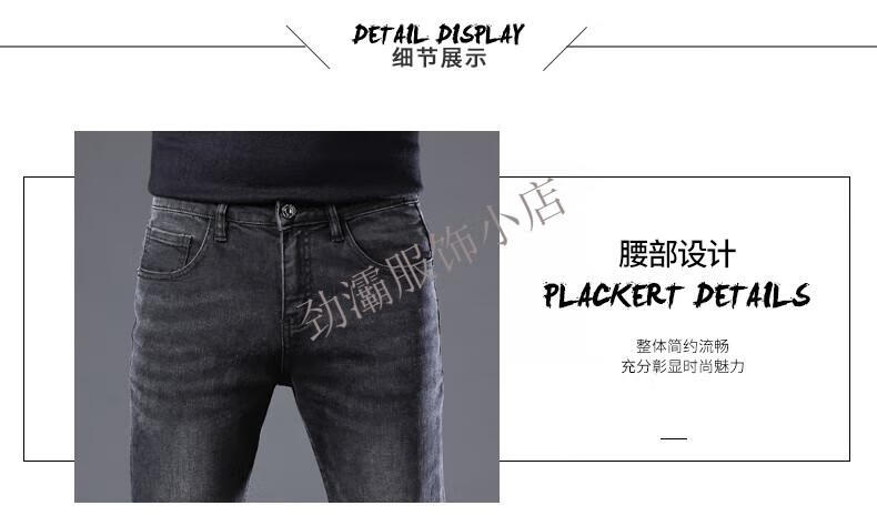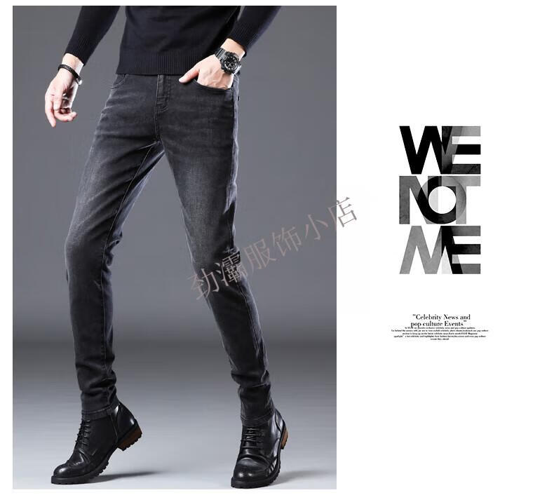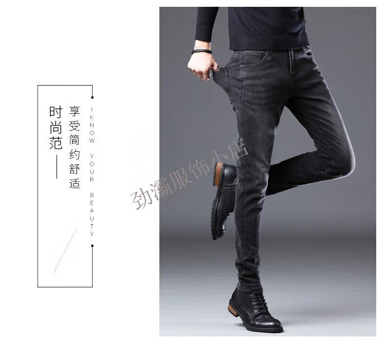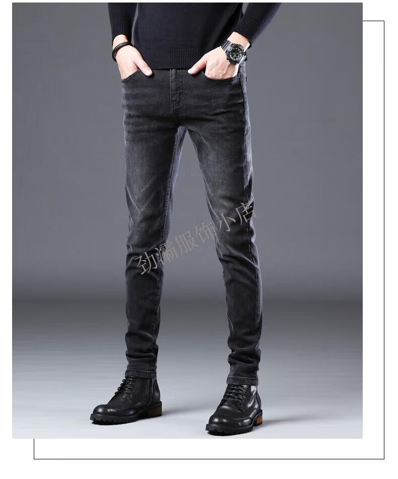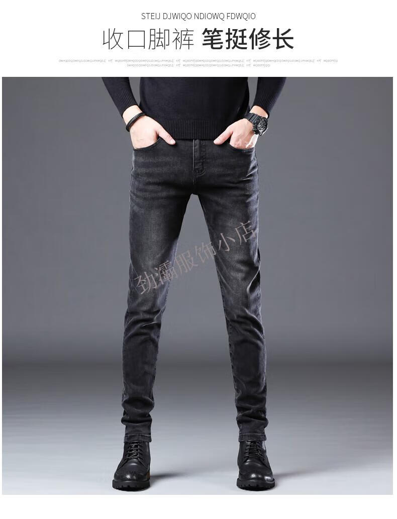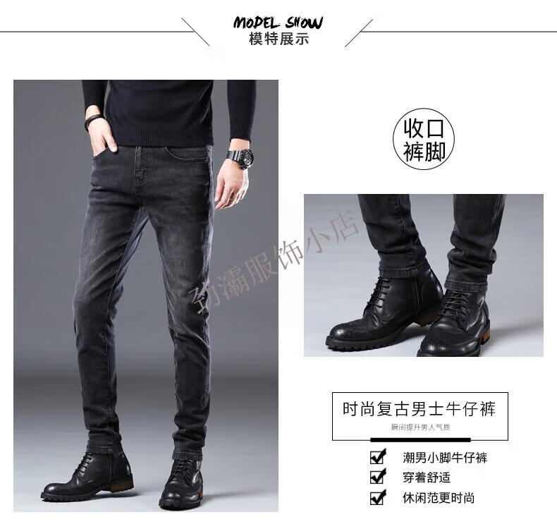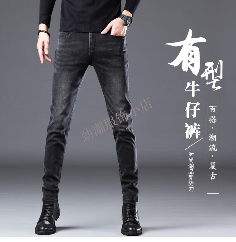 劲霸品牌男装夏季薄款黑色牛仔裤男修身小脚韩版高端弹力休闲高端 1048-黑色 28