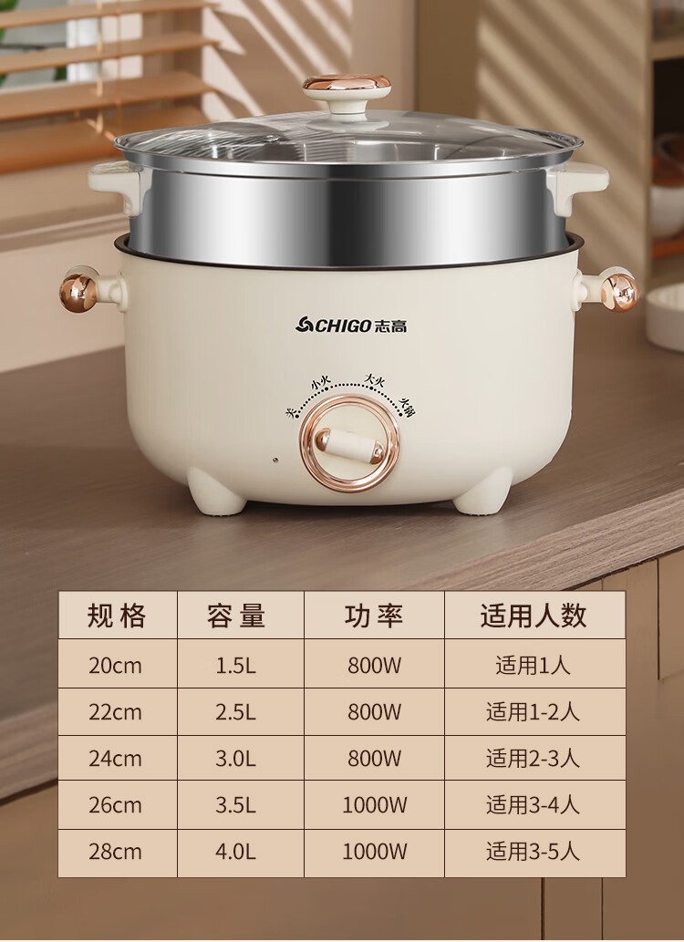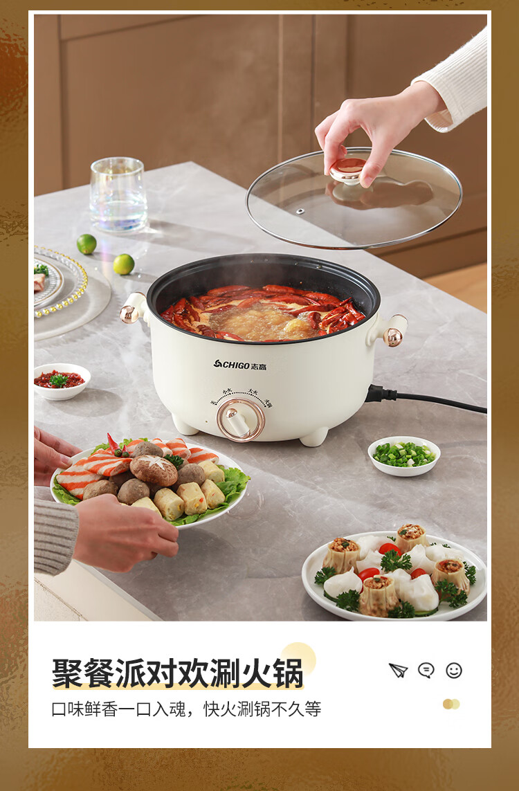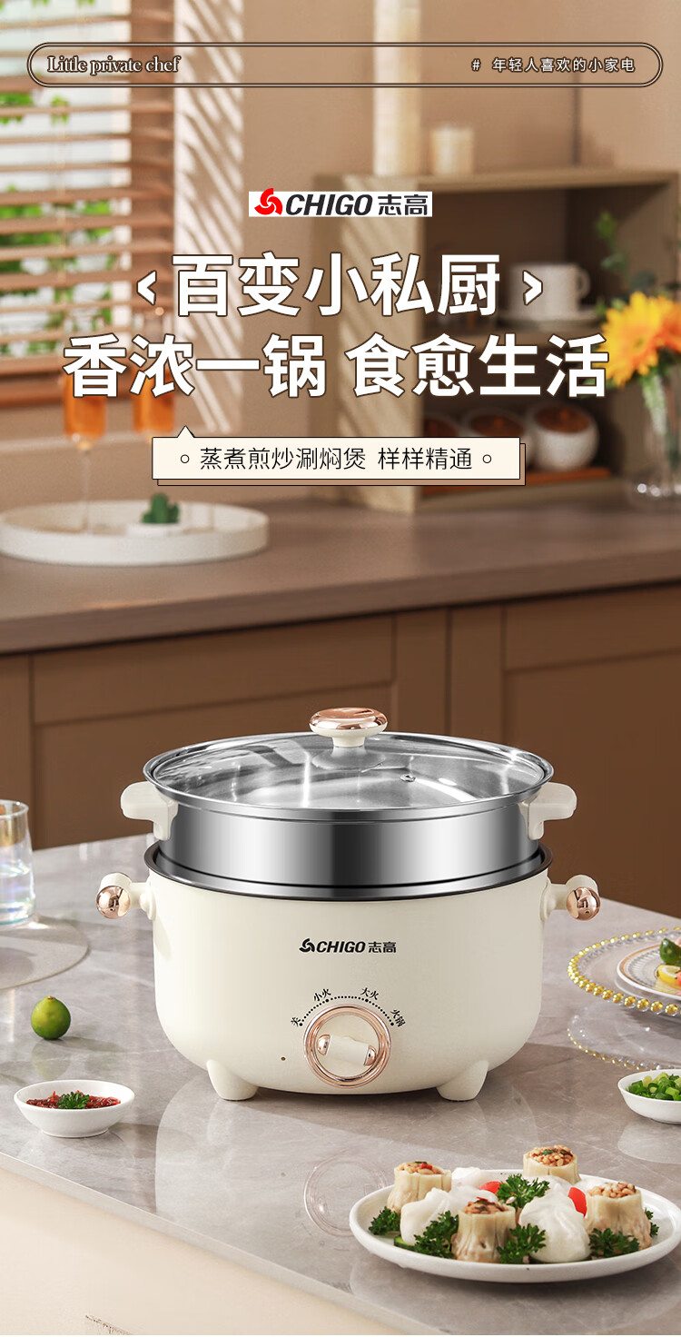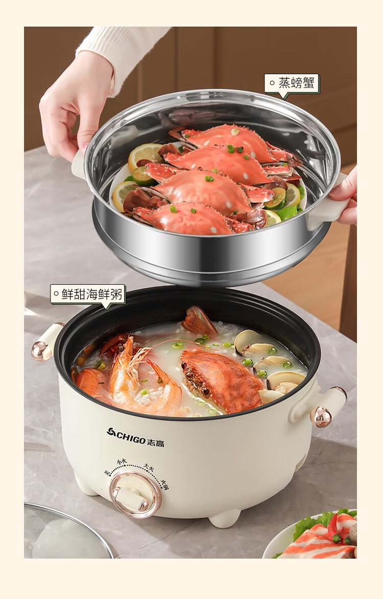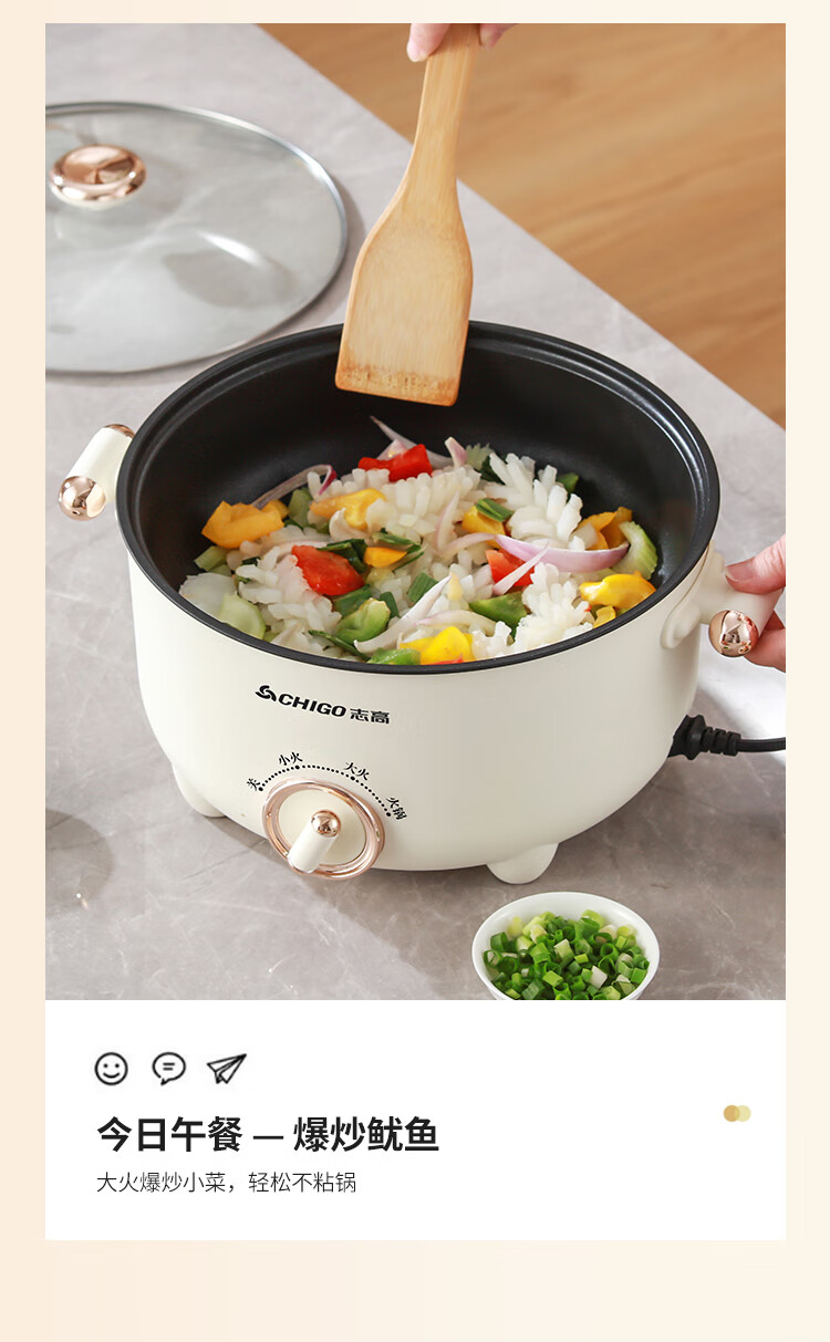 志高火锅专用锅电煮锅电火锅电热火锅宿舍学生锅电蒸锅家用多功能一体式煎炒蒸煮小电锅电炒锅小型 2L 【1人】20CM+1.5米电线